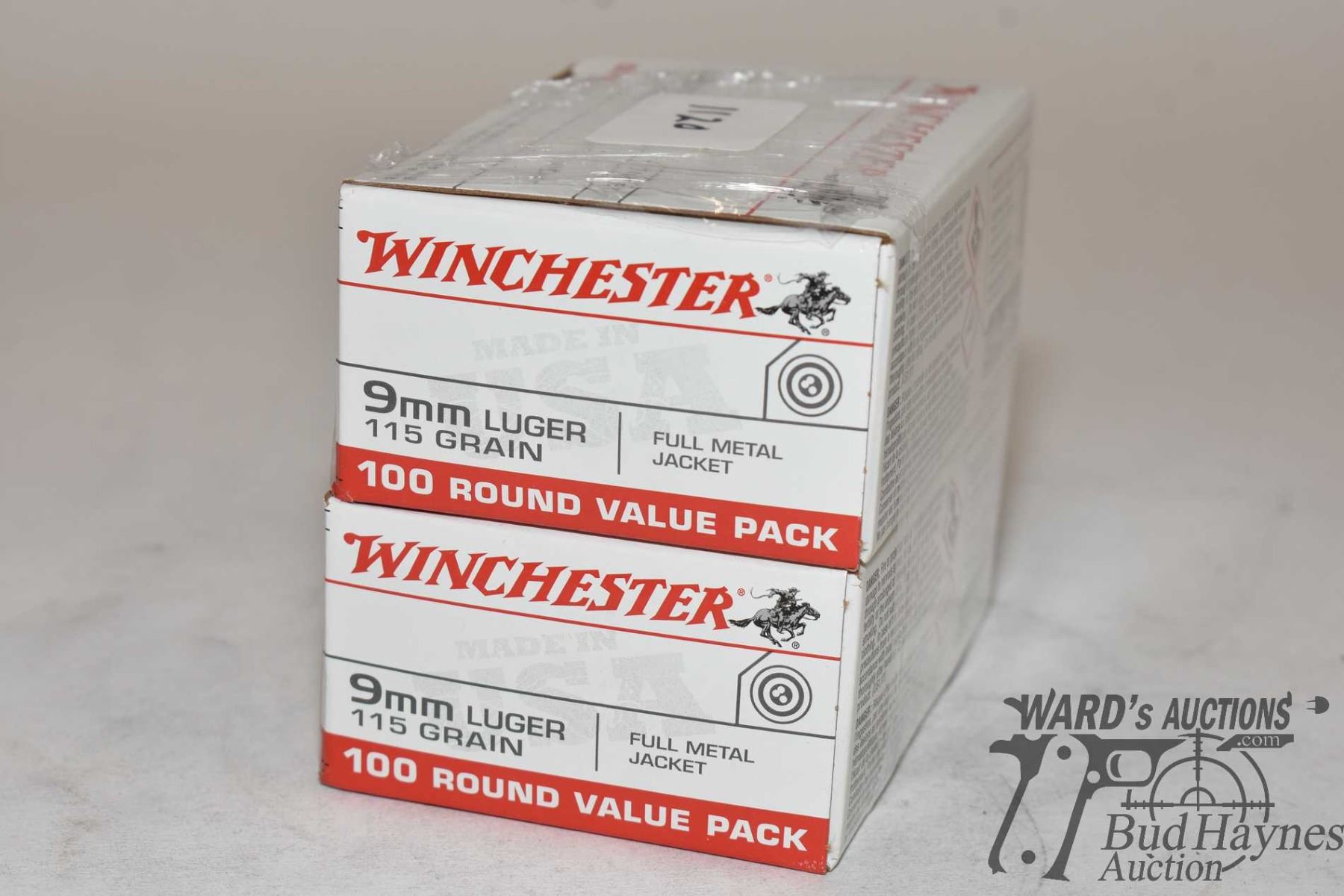 Two full 100 count boxes of Winchester 9mm 115 gr full metal jacket