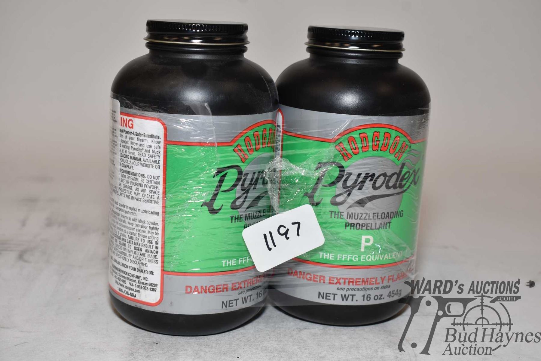 Two full 1lb containers of Hodgdon Pyrodex muzzle loading powder P-FFFG