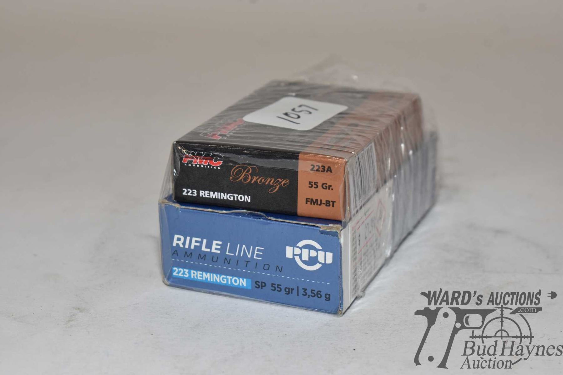 Two full 20 count boxes of .223 rounds including one PPU 55 gr SP and one PMC 55 gr FMJ-BT