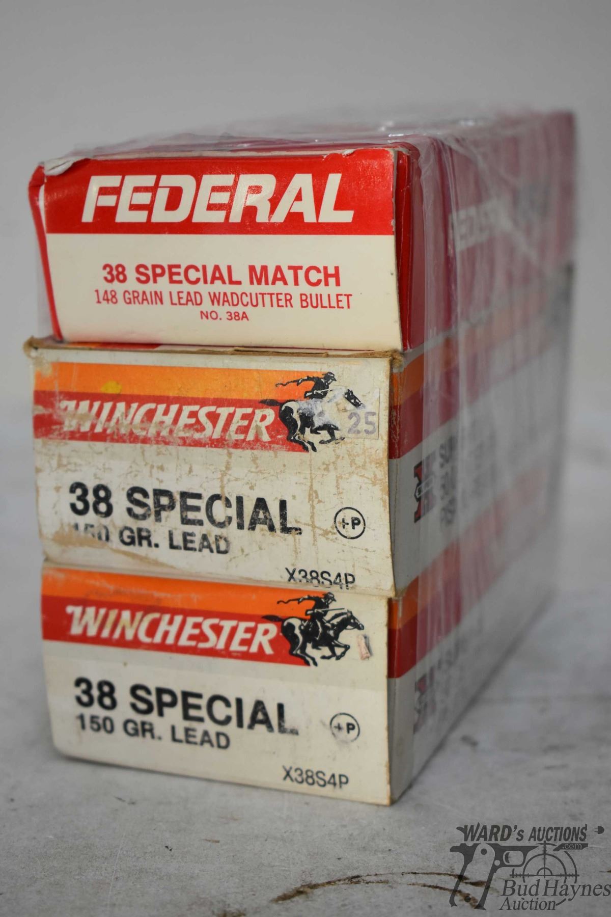 Two full 50 count boxes Winchester super x .38 spl 150 gr lead bullet and a full 50 count box .38 spl wad cutters reloads