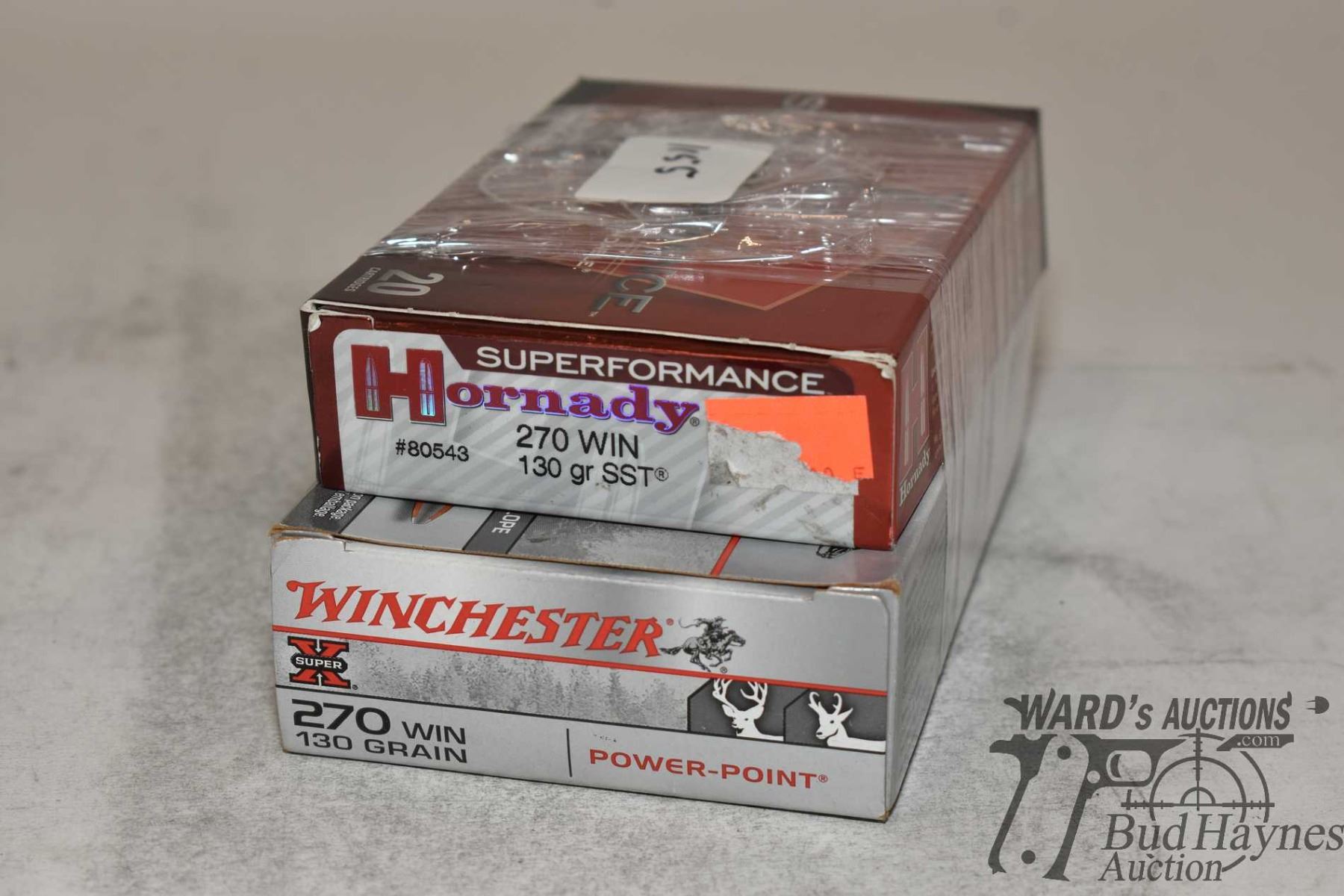 Two partial boxes of .270 win including one 13 count box of Winchester power point 130 gr and one 8 count box of Hornady super formance 130 gr SST