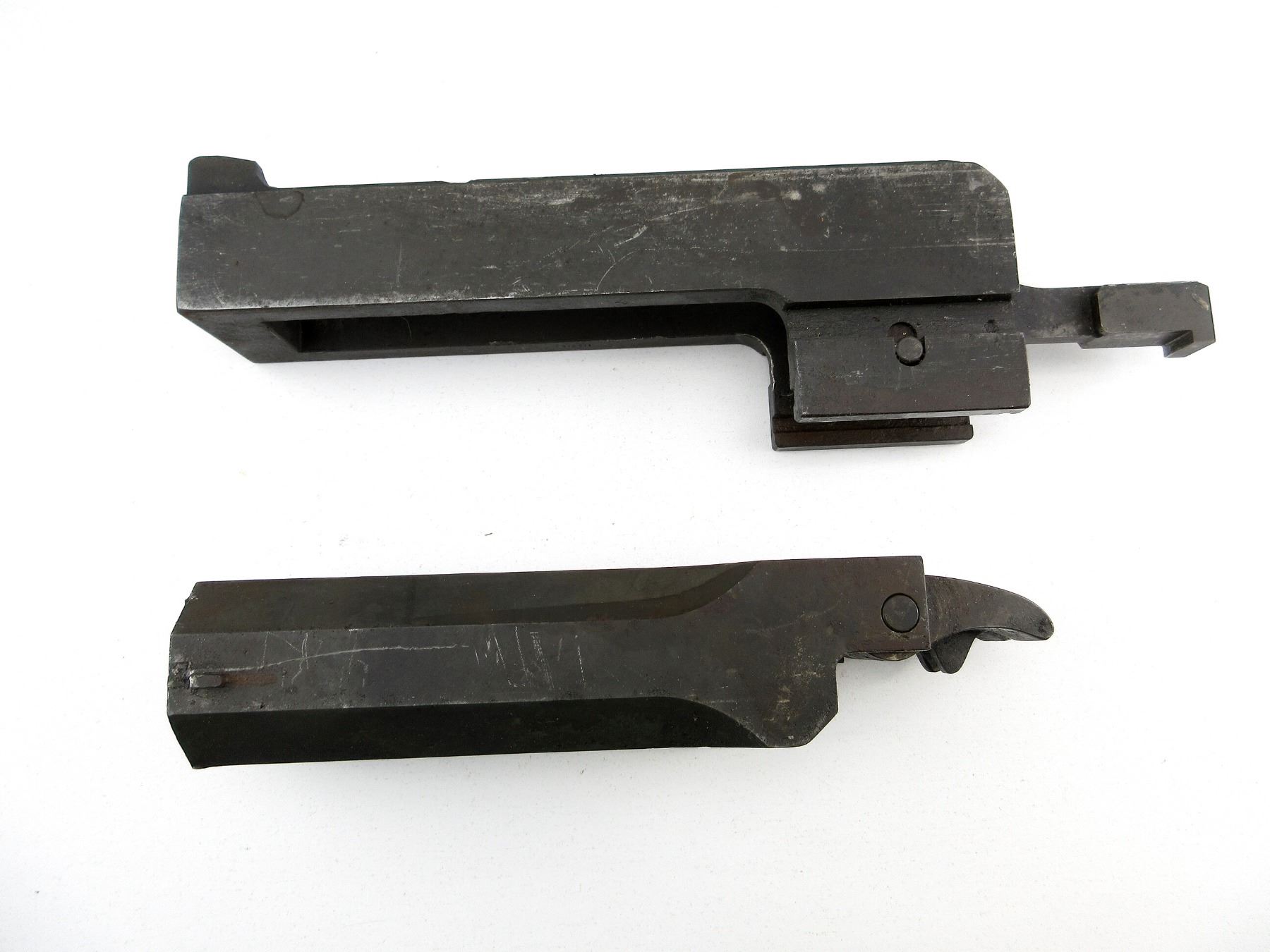 FITS .50 CAL. M2 MODELS, LOT INCLUDES; (1) BARREL EXTENSION WITH LOCKING BLOCK & PIN & (1) BUFFER BODY WITH BUFFER / ACCELERATOR & PIN. MAY REQUIRE FITTING. SEE PHOTOS.