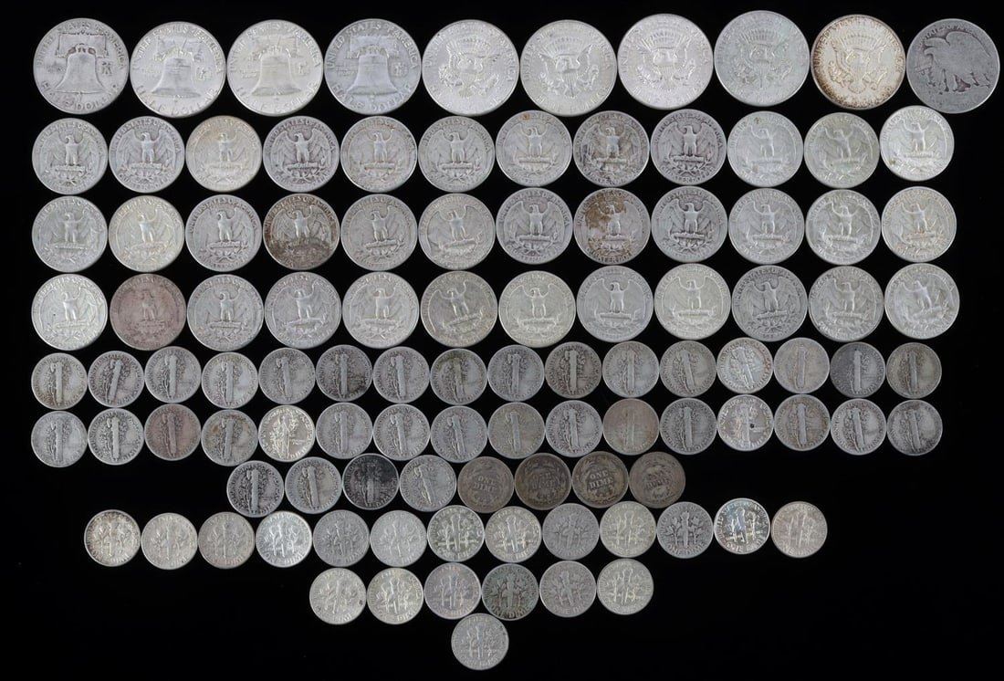 Face value $20 of unsearched, circulated 90% silver may include Walker, Kennedy & Franklin half dollar coins, Mercury, Roosevelt dimes and Barber and or Washington quarters. This lot has a reserve.