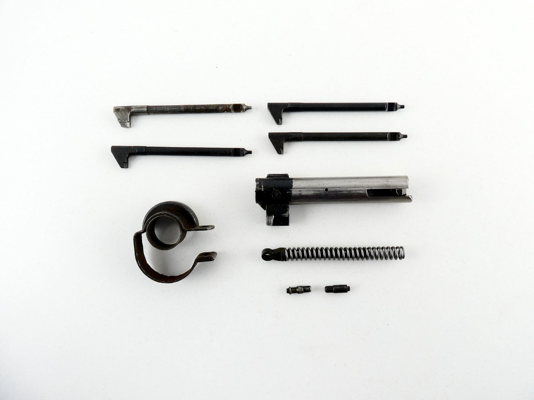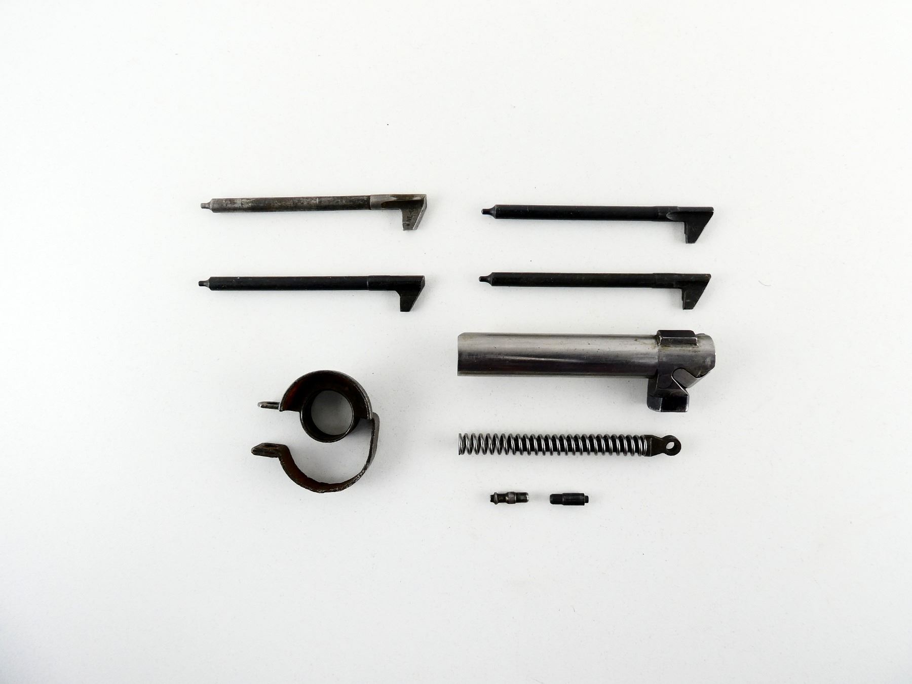 LOT INCLUDES; (1) ROUND BOLT, APPEARS COMPLETE, IN THE WHITE STEEL CONSTRUCTION, BARREL BAND, HAMMER SPRING WITH PLUNGER, (4) FIRING PINS, ETC. MAY REQUIRE FITTING. SEE PHOTOS.