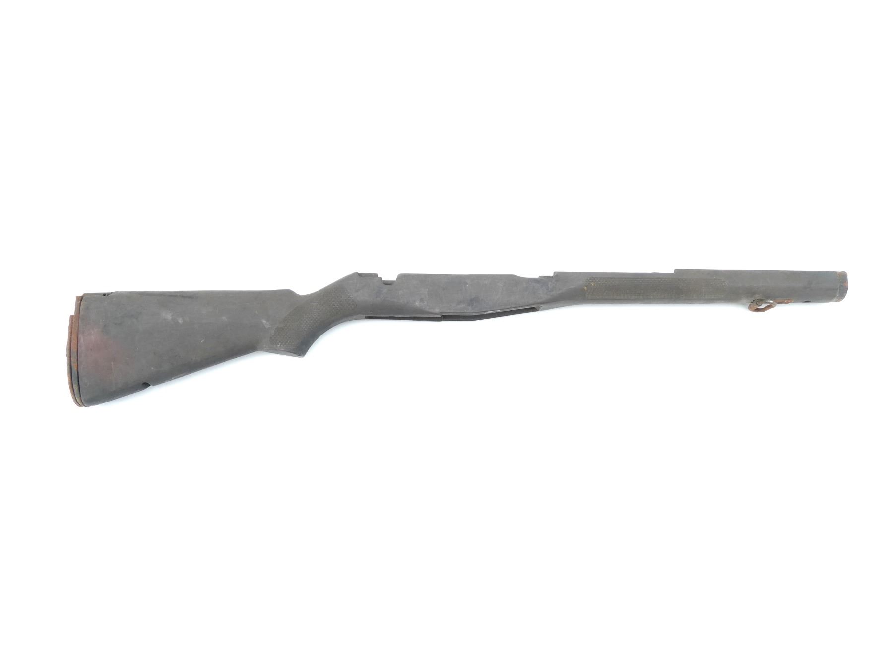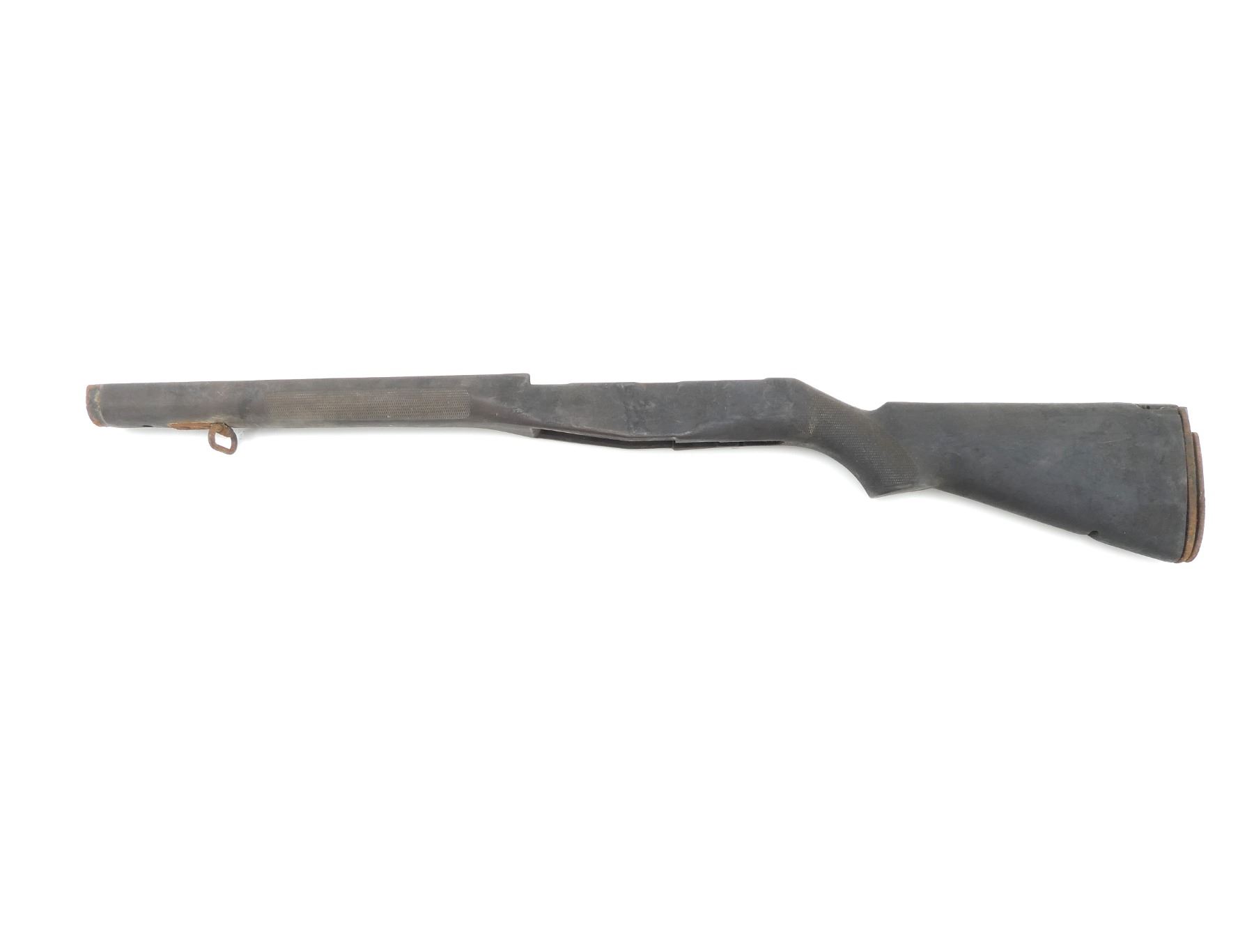(1) SYNTHETIC CONSTRUCTION, CHECKERED, UNMARKED, WITH FRONT SLING SWIVEL, BUTT PLATE SHOWS RUST, SHOWS WEAR / TEAR, OVERALL LENGTH APPROX. 33". MAY REQUIRE FITTING. SEE PHOTOS.