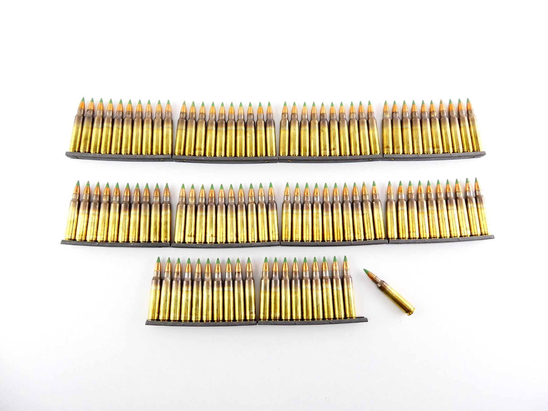 LOT INCLUDES; APPROX. (100) RNDS, GREEN TIP SS 109, (10) STRIPPER CLIPS.