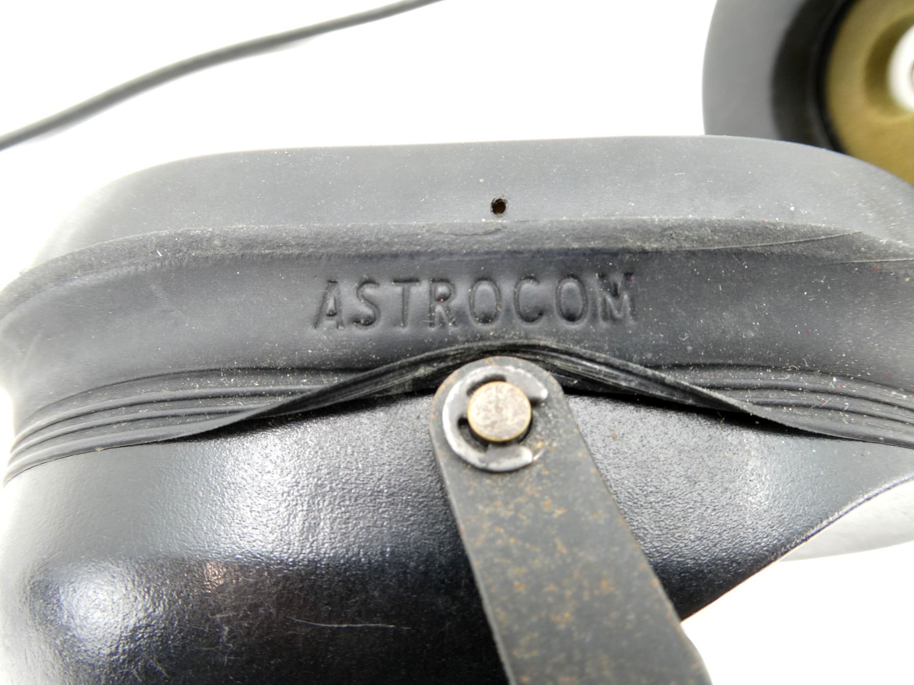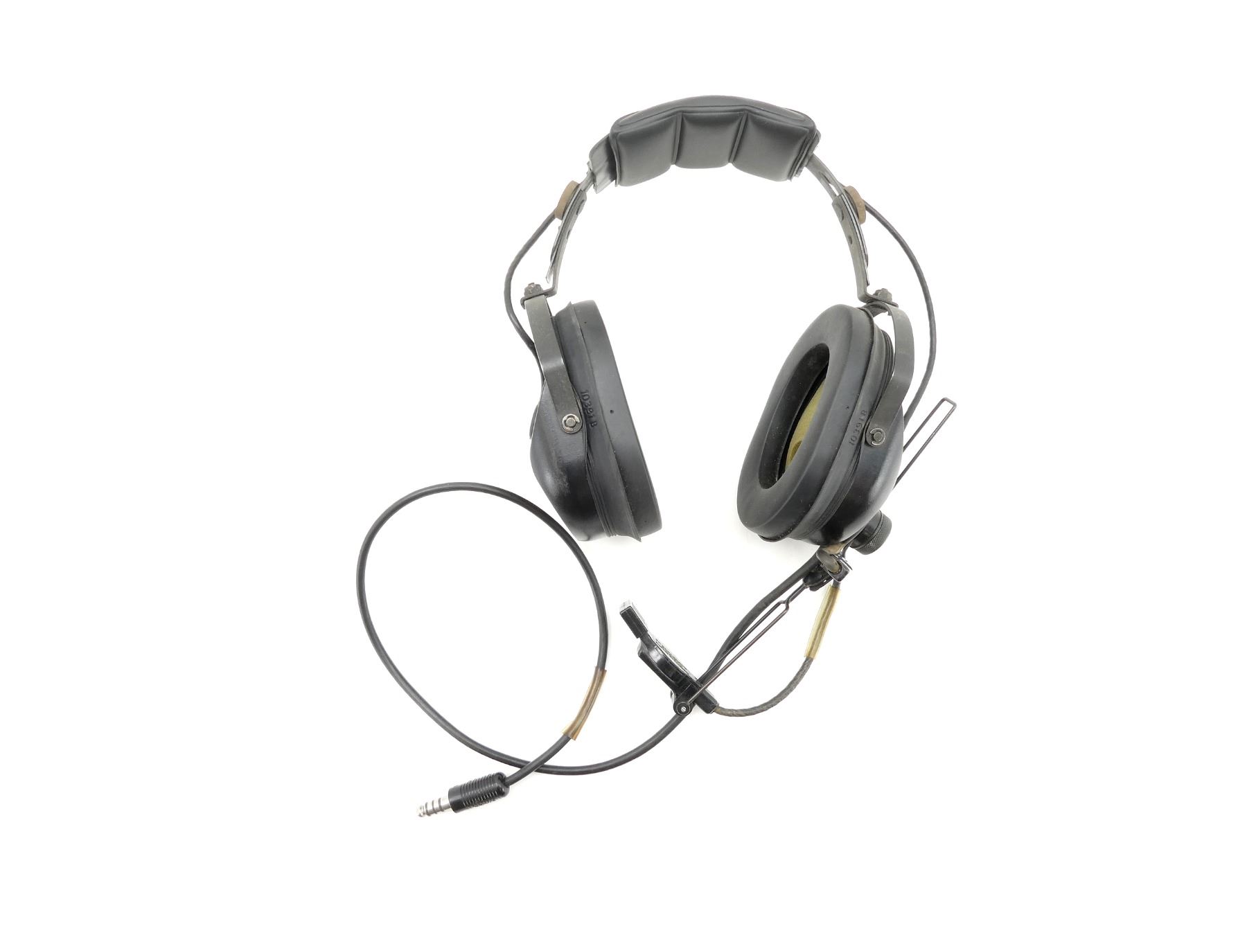(1) HEADSET MARKED: "ASTROCOM", "10391B", "MICROPHONE M-87/AIC, ASTROCOM, 10345E, 5965-00-755-4643", WITH CONNECTOR CABLE, UN-TESTED, SHOWS AGE / WEAR. SEE PHOTOS.