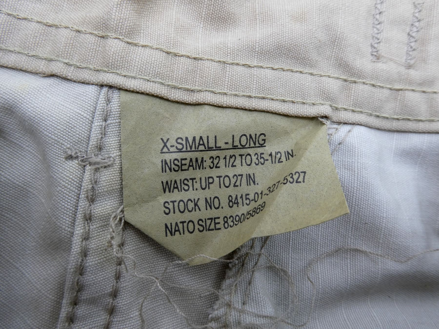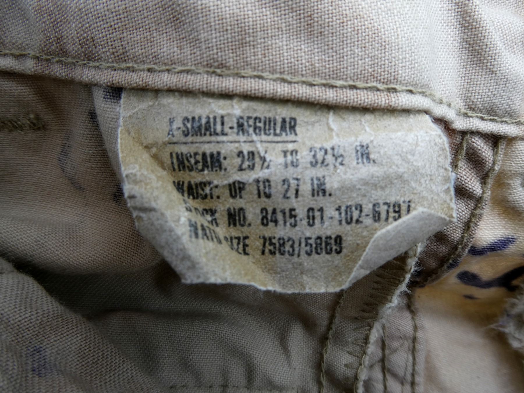 LOT INCLUDES; (2) DESERT CAMO PATTERN COMBAT SHORTS, SIZE XS-LONG, VARIOUS LABELS & MARKINGS, BUTTON-FRONTS, SHOWS SLIGHT WEAR (STAINS) & (1) DESERT CAMO PATTERN PANTS, SIZE XS-REGULAR, VARIOUS LABELS & MARKINGS, BUTTON-FRONTS, SHOWS WEAR. SEE PHOTOS.