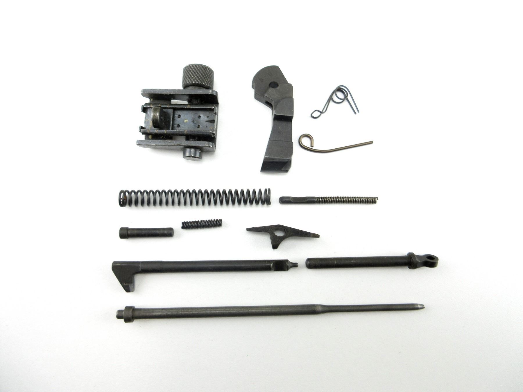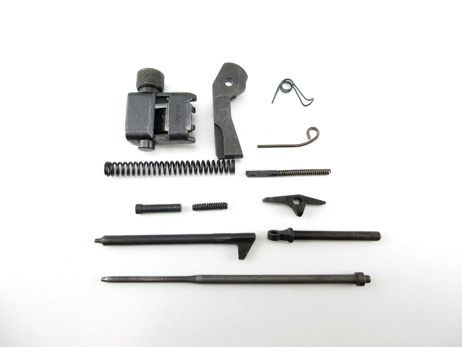 LOT INCLUDES; COMPLETE ADJUSTABLE REAR SIGHT (MARKED: "JAPAN"), HAMMER, FIRING PIN, SEAR, RETURN SPRING GUIDE, TRIGGER SPRING, EJECTOR, VARIOUS PINS / SPRINGS, ETC. MAY REQUIRE FITTING. SEE PHOTOS.