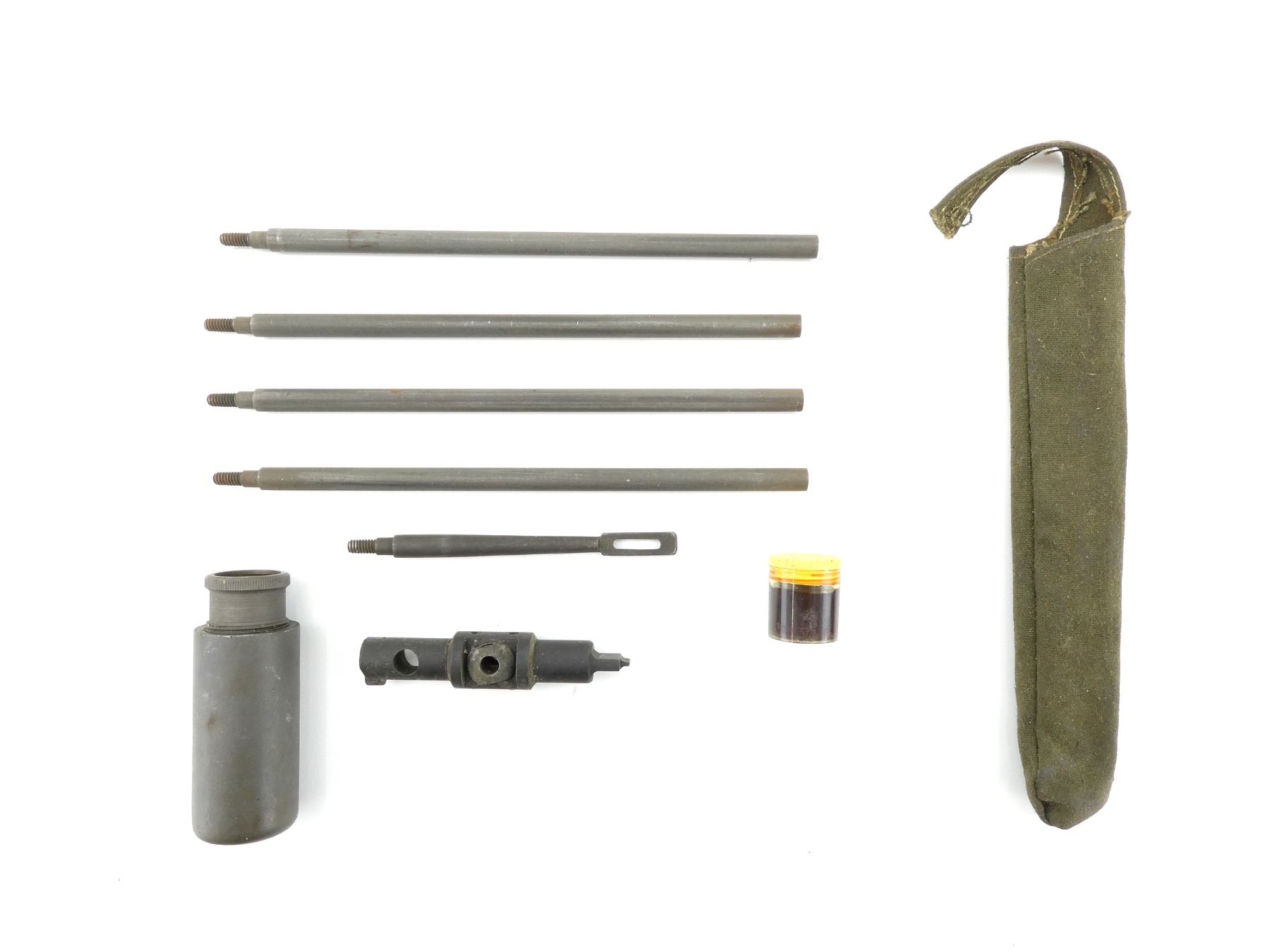 LOT INCLUDES; (1) CLEANING KIT WITH 5-PIECE CLEANING ROD, GREASE POT, (1) M1 GARAND COMBO TOOL & (1) HANDLE FOR 5-PIECE CLEANING ROD. SEE PHOTOS.