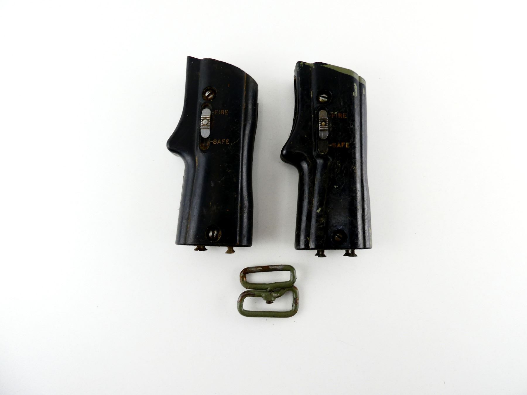LOT INCLUDES; (2) GRIP ASSEMBLIES WITH SAFETY & SCREWS & (1) SLING SWIVEL. MAY REQUIRE FITTING. SEE PHOTOS.
