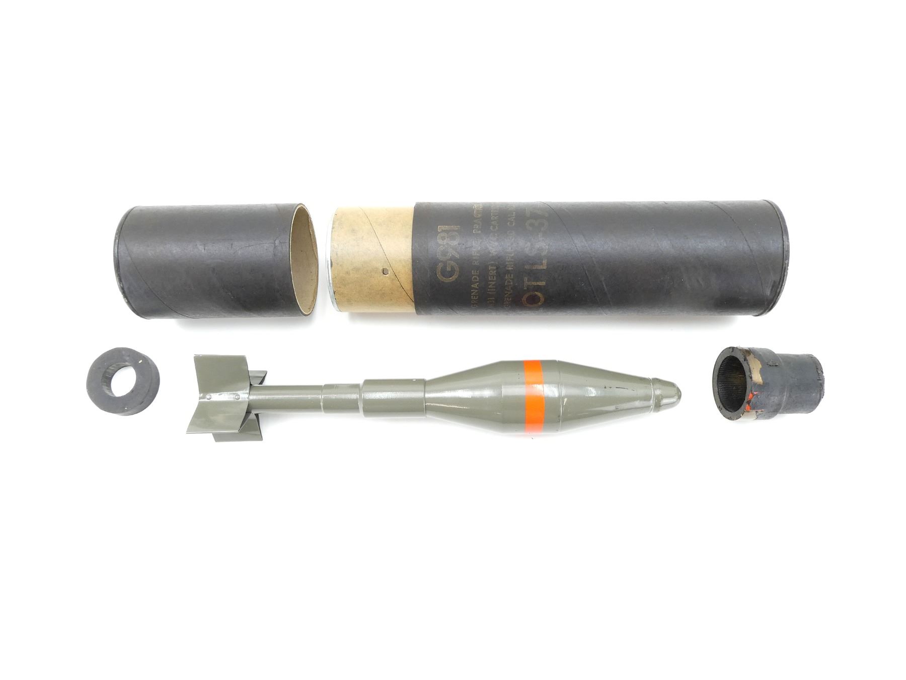 U.S. MILITARY M31 PRACTICE RIFLE GRENADE AND CANNISTER INERT LOT