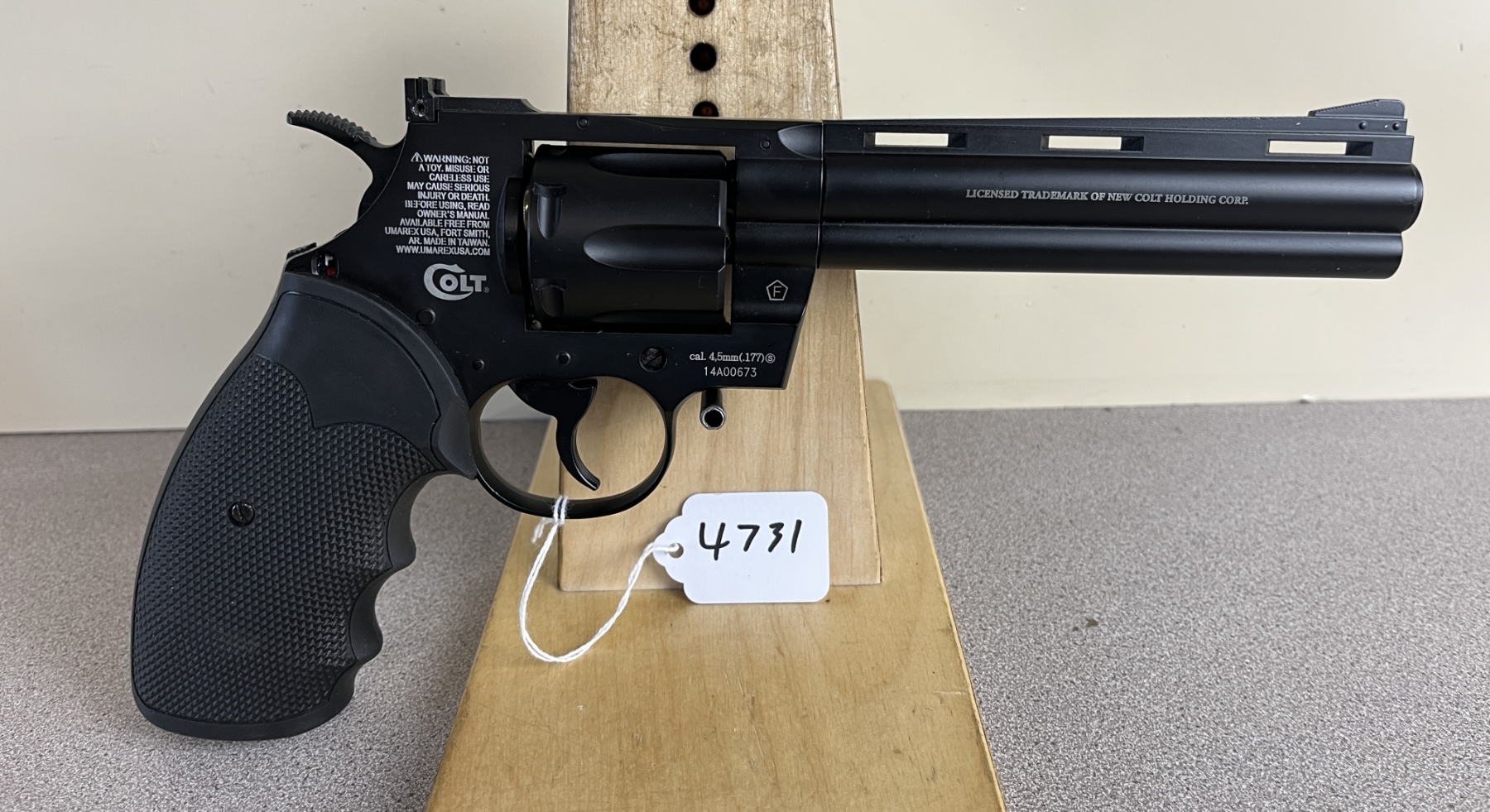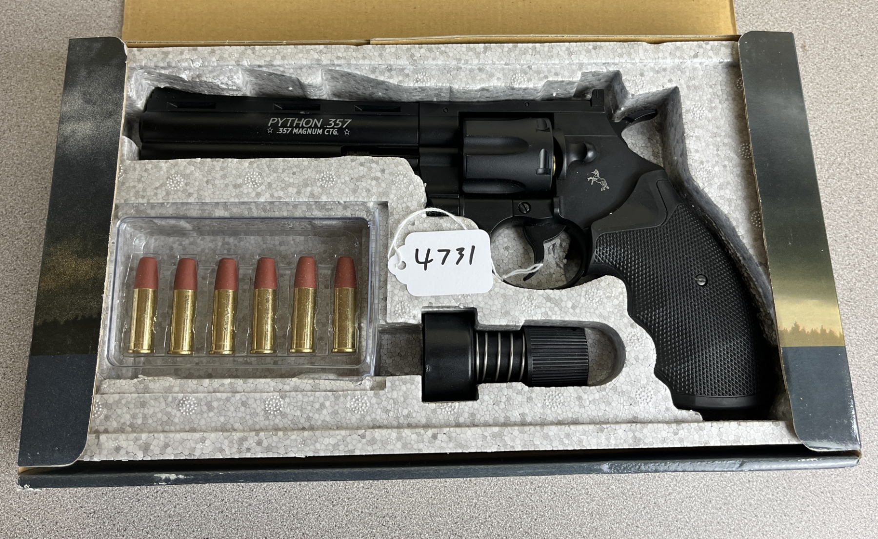 CONDITION: VG OVERALL INCL BORE. SPECS: 6IN BBL. <500FPS. EXTRAS: ORIGINAL BOX, SPEED LOADER, 9X BB CARTRIDGES. S/N: 14A00673