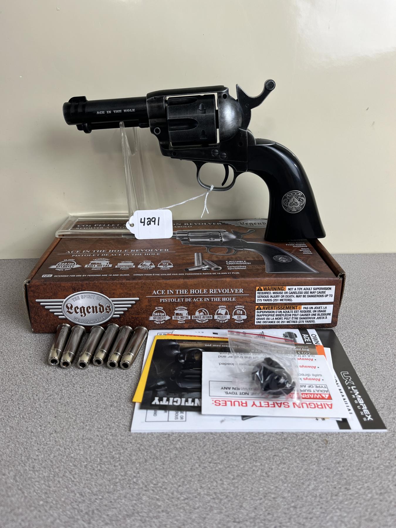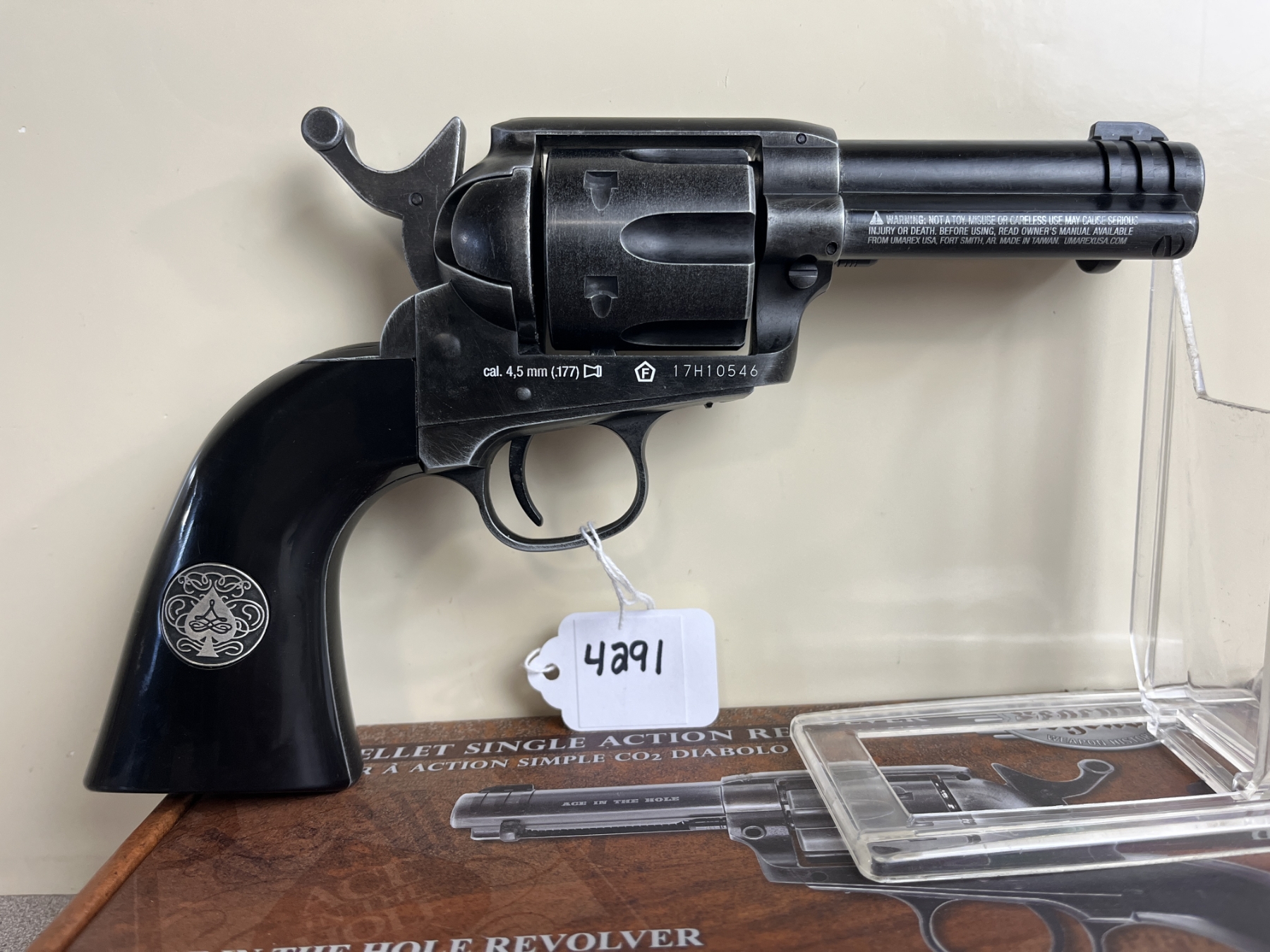 CONDITION: VG OVERALL. SPECS: 3-1/2IN BBL. EXTRAS: ORIGINAL BOX, PAPERWORK, 6X PELLET CARTRIDGES. S/N: 17H10546