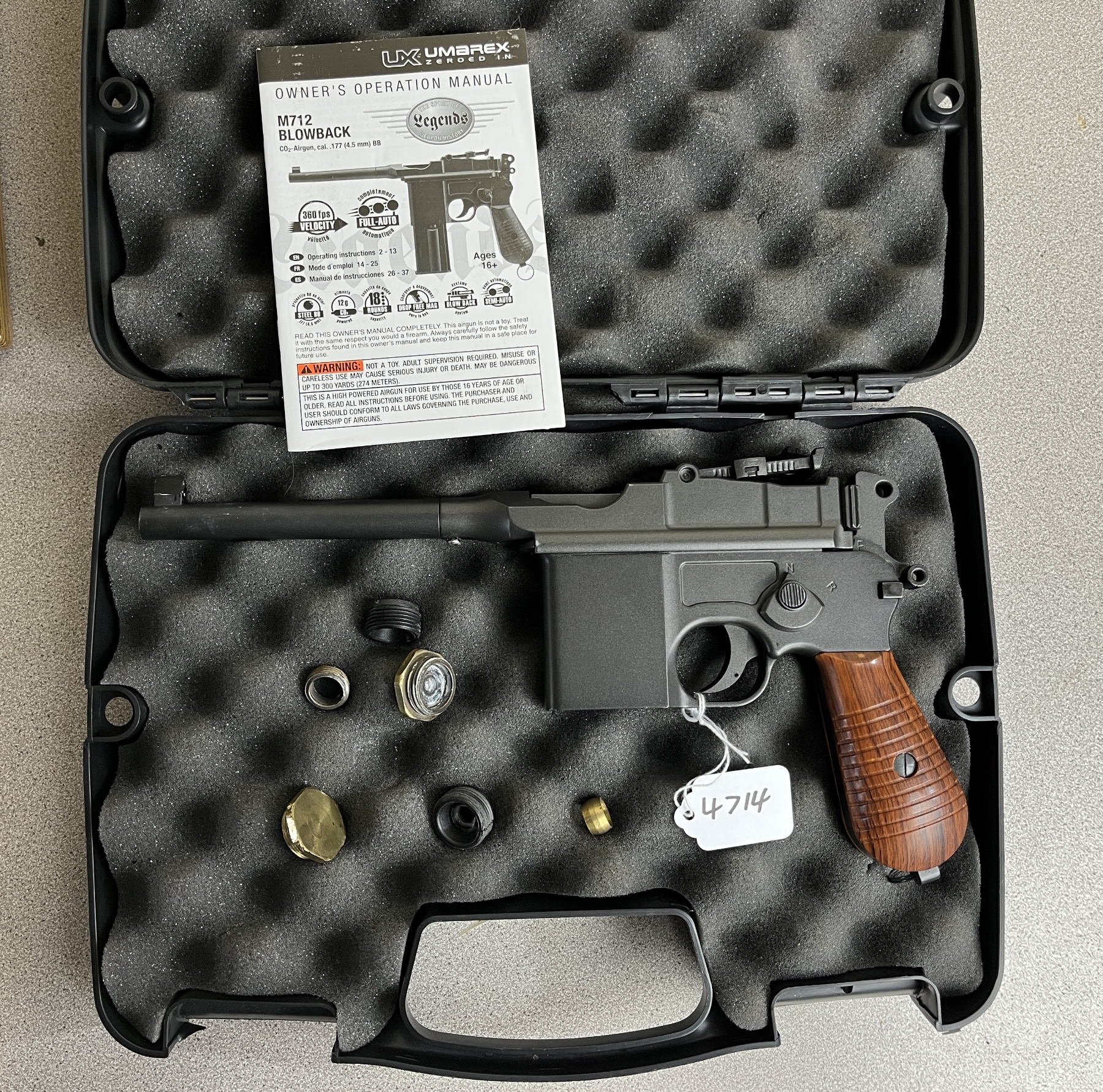 CONDITION: PARTS GUN, MISSING MAGAZINE, NON-ORIGINAL SCREW SECURING BARREL. SPECS: 5-1/2IN BBL. <500FPS. EXTRAS: ORIGINAL MANUAL, PLASTIC HARDCASE, ASSORTED SPARE PARTS (SEE PICS). S/N: 14E30911