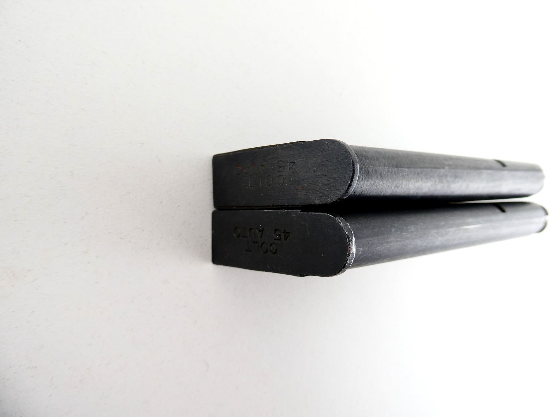 LOT INCLUDES; (2) .45 ACP MAGS, 8 RNDS, BLUED STEEL CONSTRUCTION, BASES MARKED: "COLT, 45 AUTO". SEE PHOTOS. PAL REQUIRED.