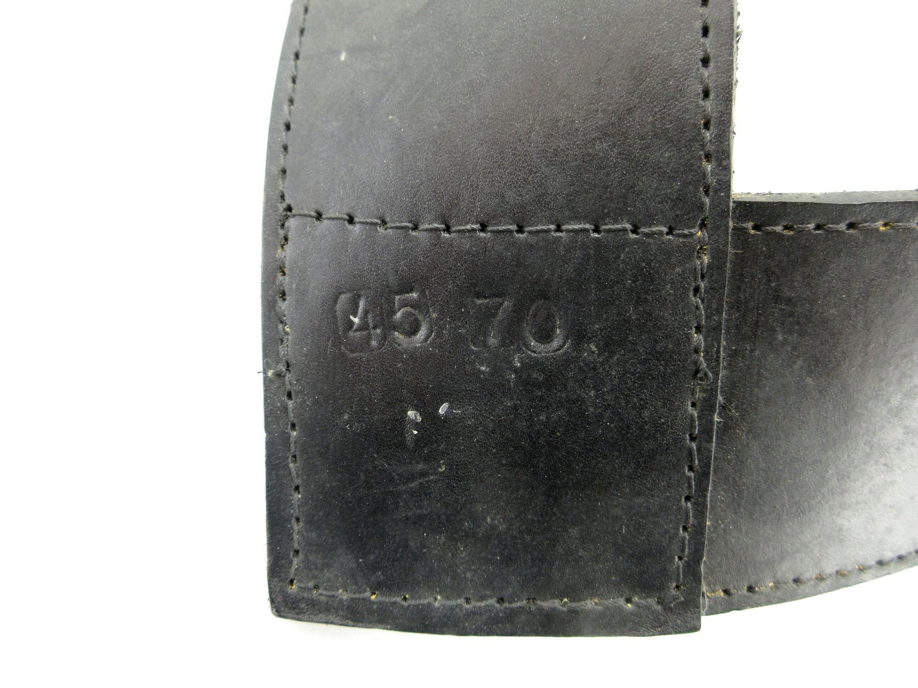 (1) BLACK LEATHER BANDOLIER, HOLDS 60 RNDS, MARKED: "45 70". SEE PHOTOS.