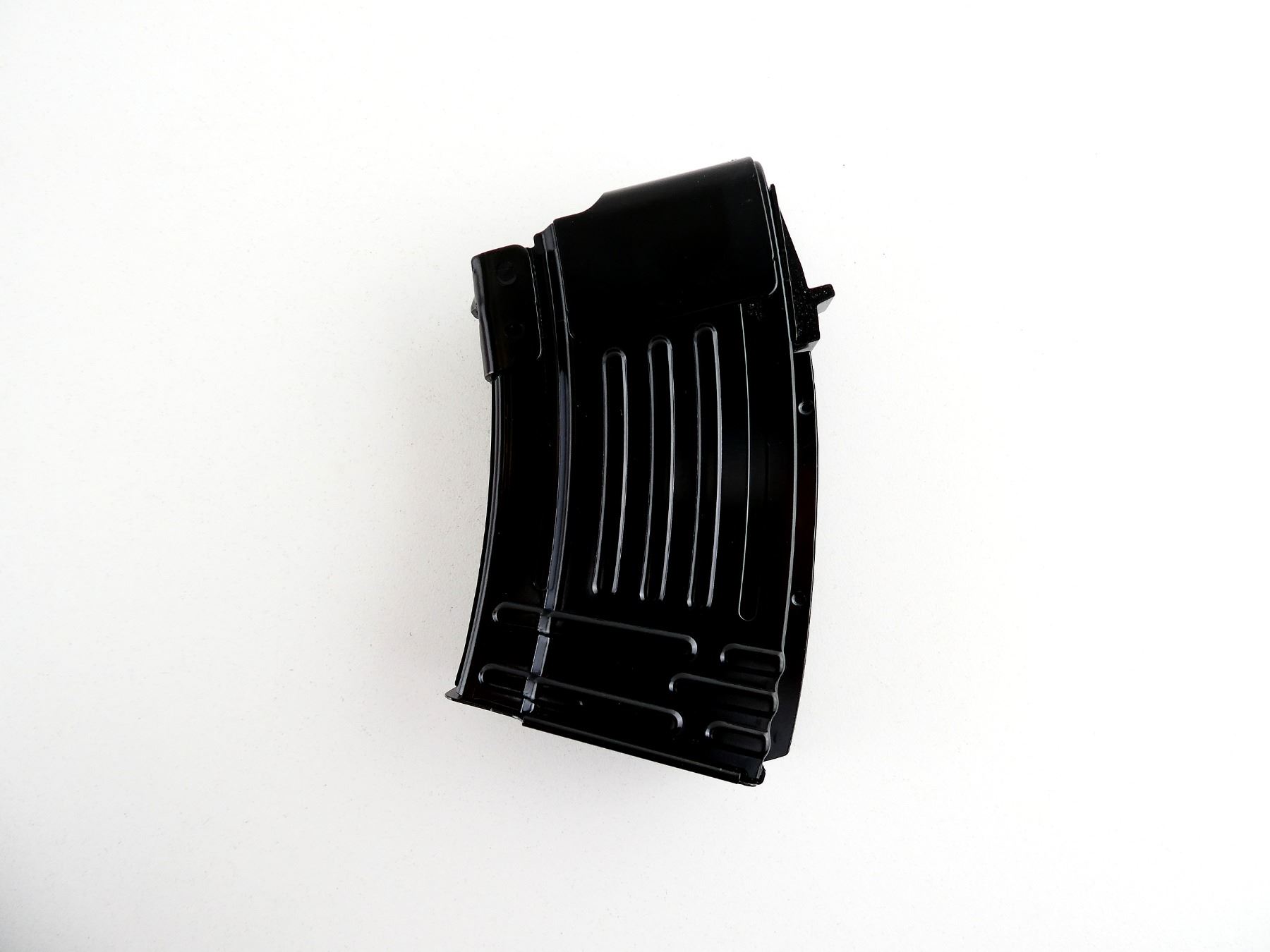 (1) 7.62X39MM, 5/15 ROUND PINNED MAG, BLUED STEEL CONSTRUCTION, MARKED: "MADE IN KOREA", ALSO FITS SKS-D RIFLES. SEE PHOTOS. PAL REQUIRED.