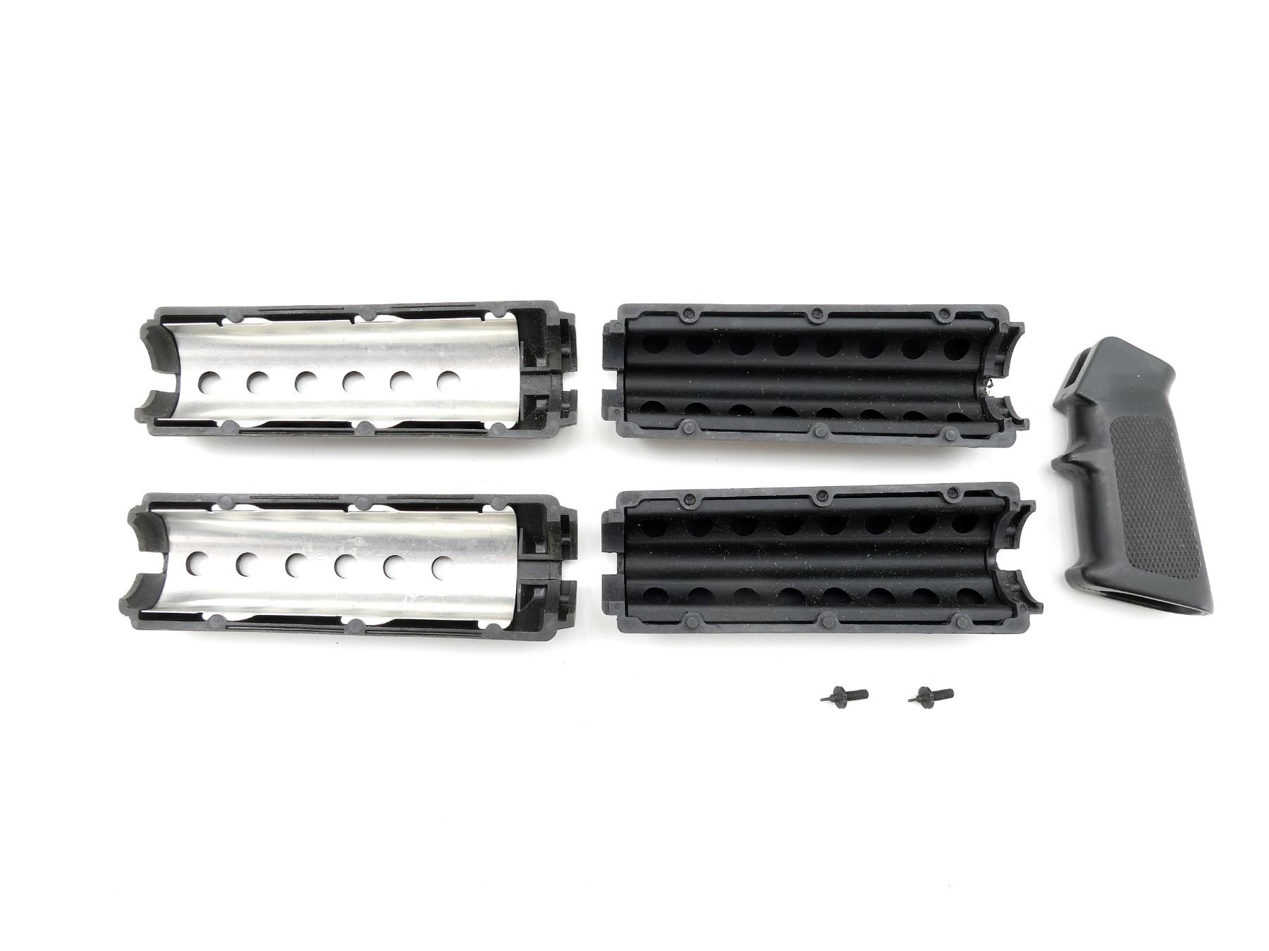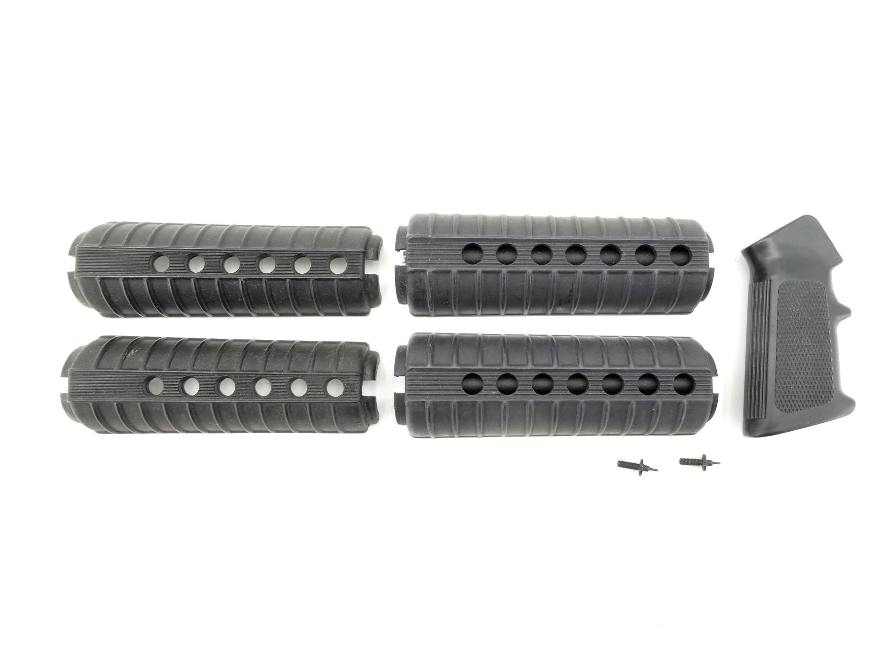 LOT INCLUDES; (2) SETS OF M4 HAND GUARDS, (1) BLACK POLYMER PISTOL GRIP, (2) FRONT SIGHTS, ETC. MAY REQUIRE FITTING. SEE PHOTOS.