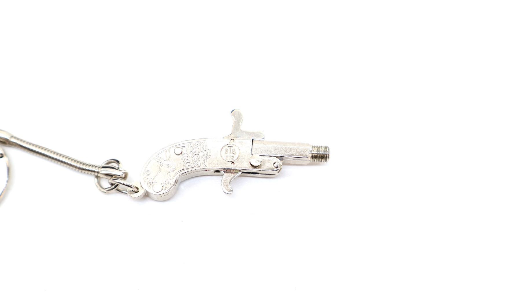 Main Description: No sights, Nickel finish threaded at muzzle with removable flare cup, smooth spur hammer and trigger, engraved frame, lanyard loop with attached ring.
