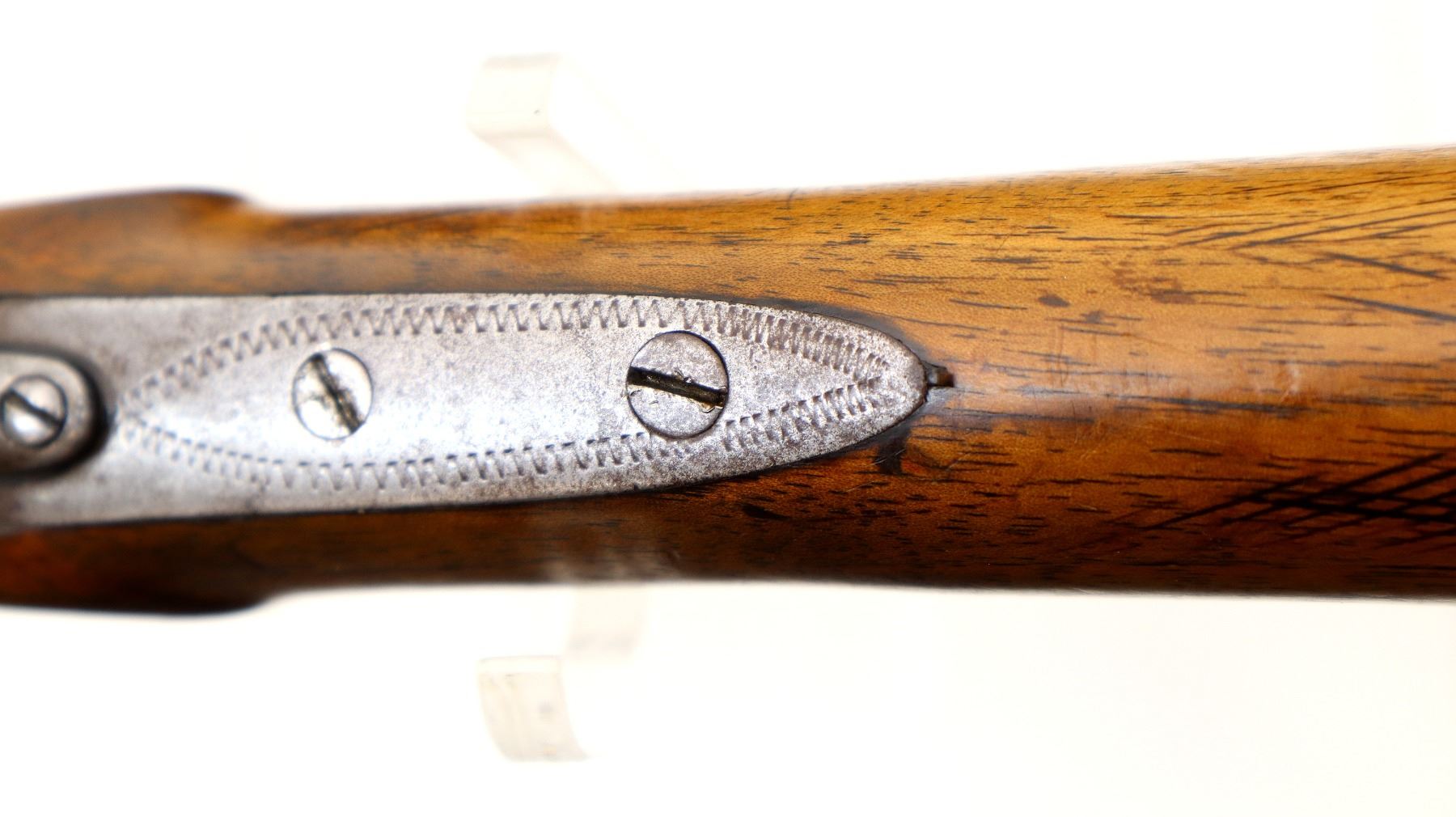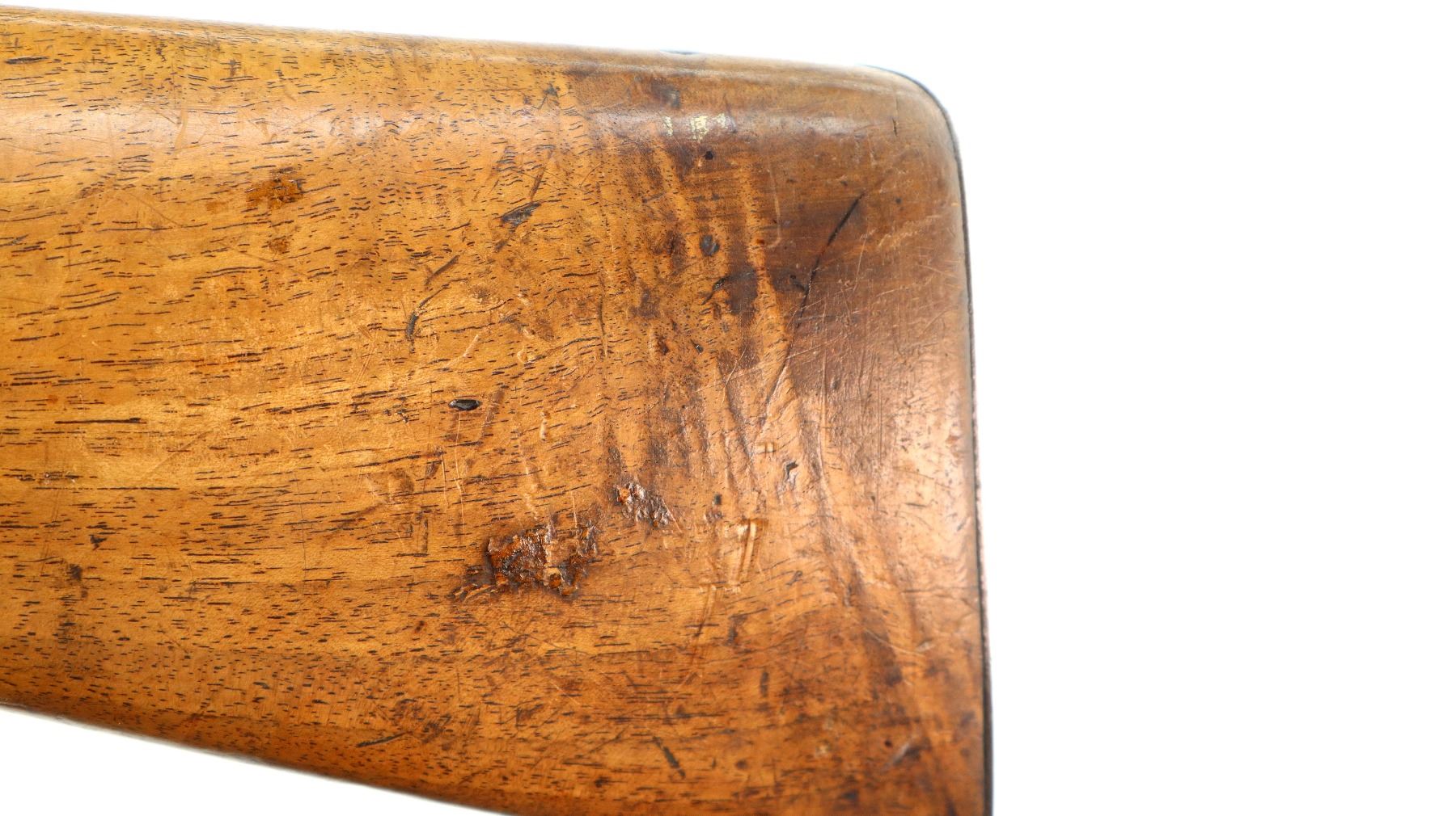 Wear: Metal finish turning silver grey with pitting, light rust speckles, scratches, handling marks and wear. Stocks show marks, scratches and wear.