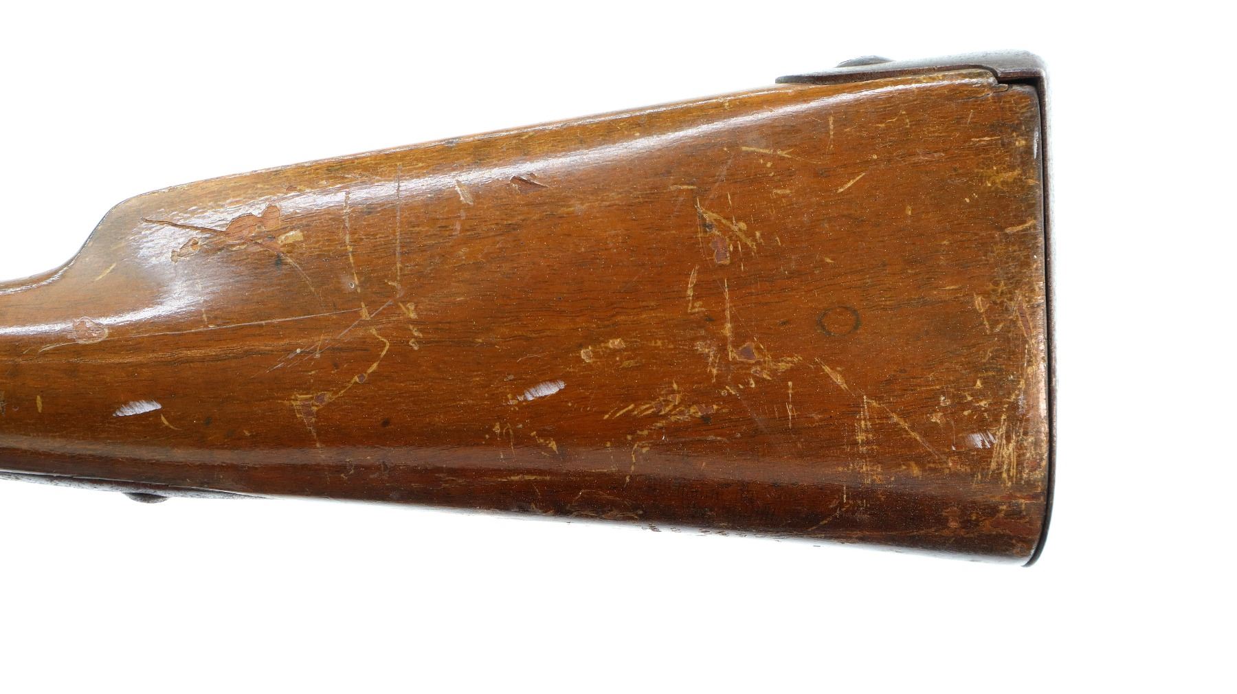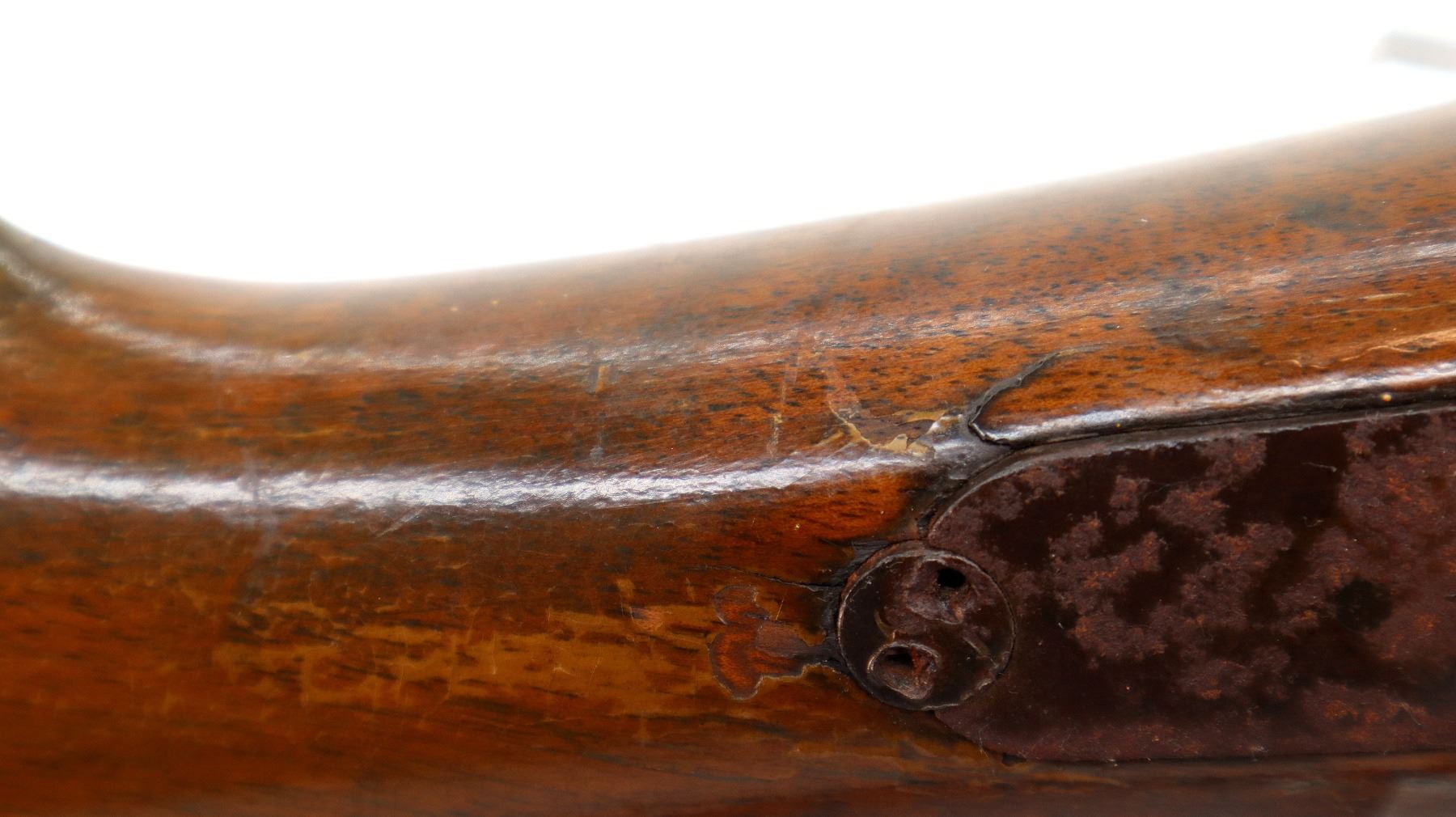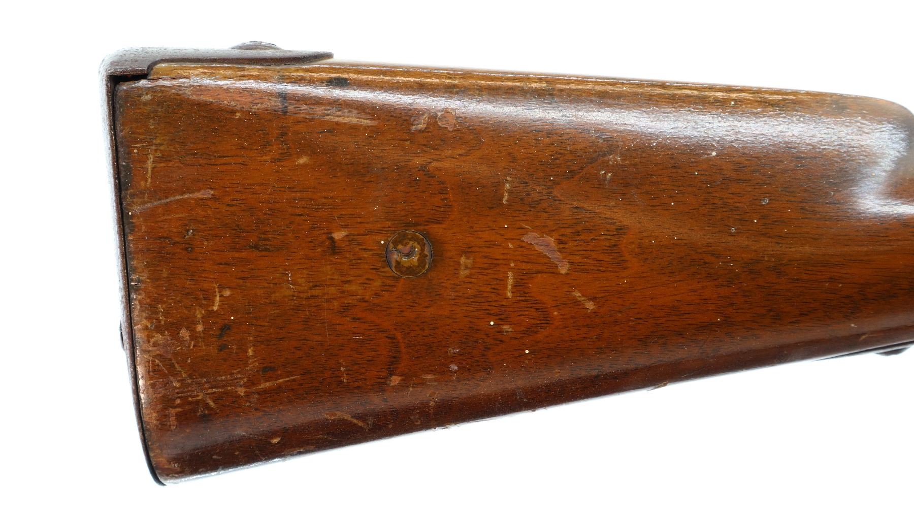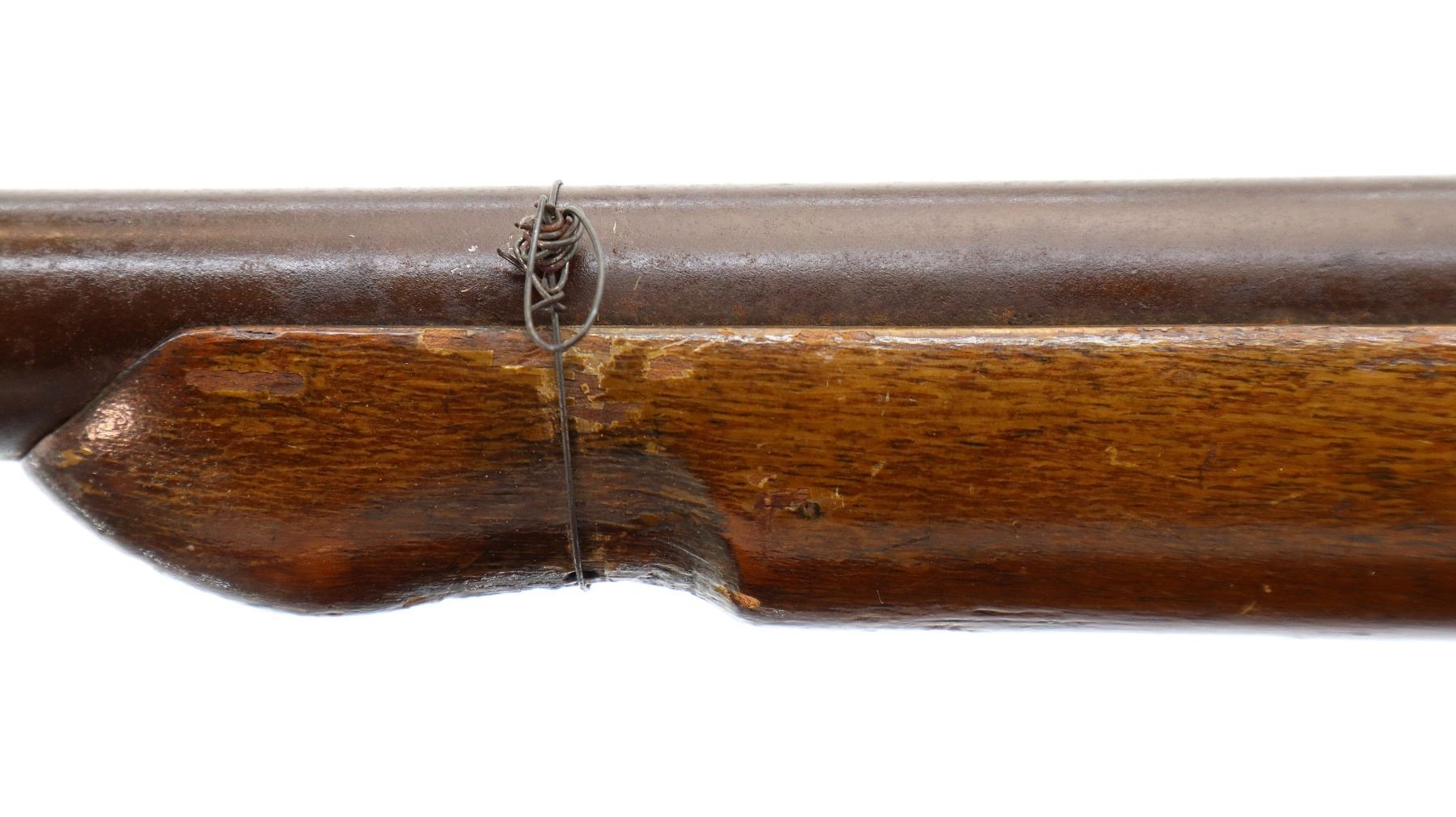 Wear: Metal finish turning brown with pitting, rust, scratches, handling marks and wear. Stock shows marks, scratches and wear.