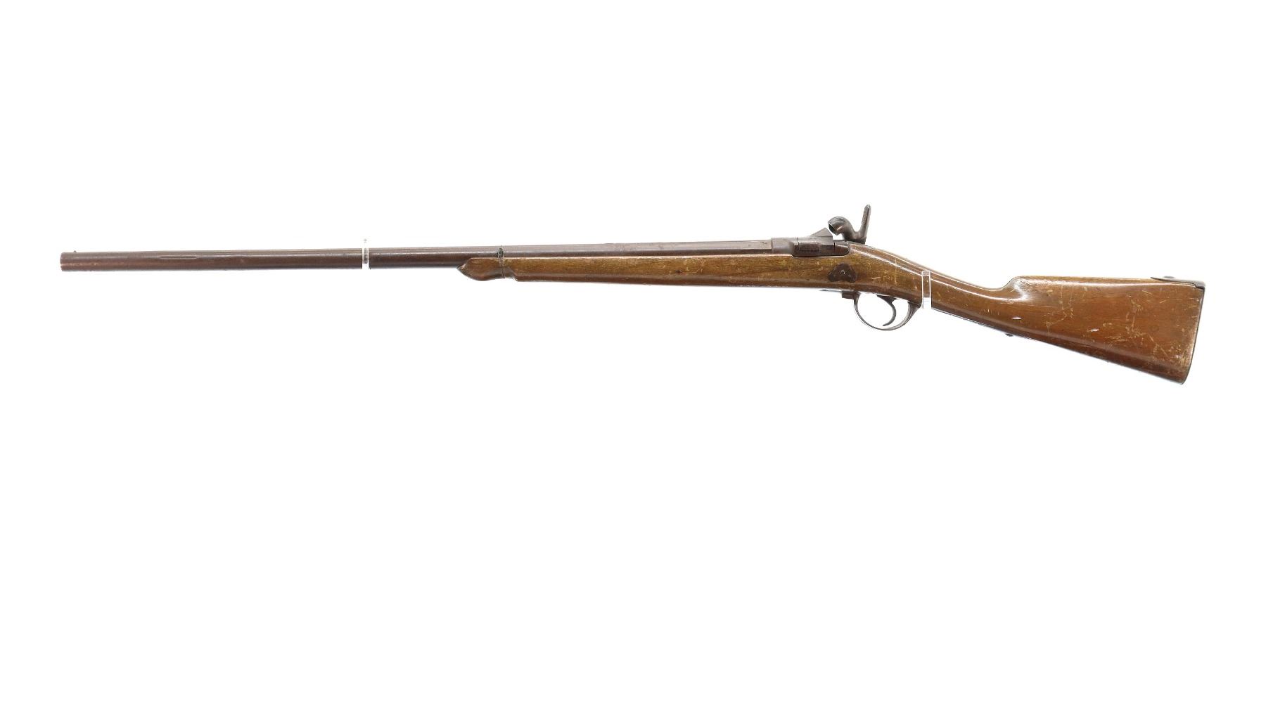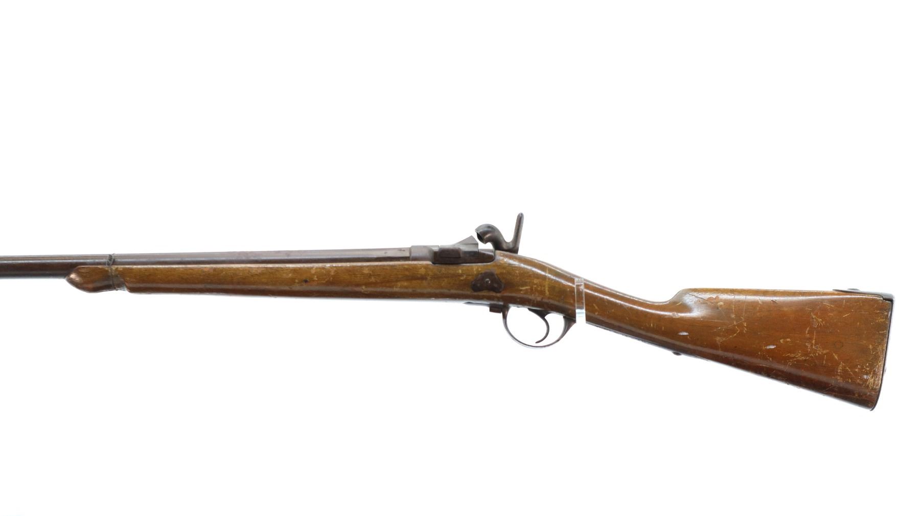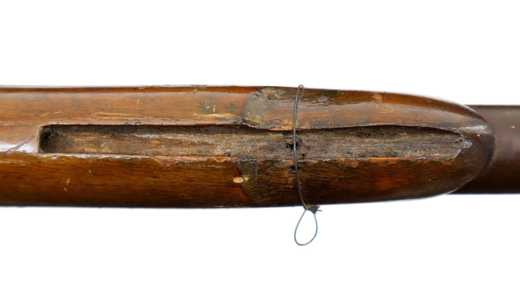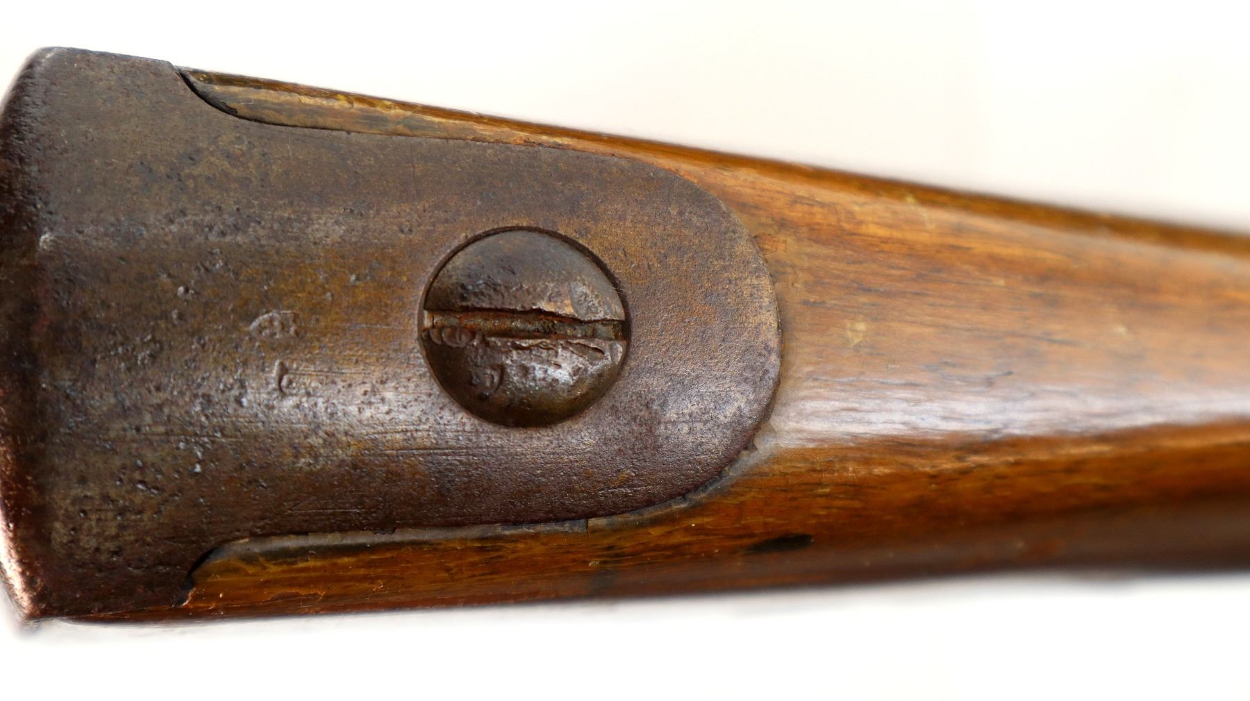 Wear: Metal finish turning brown with pitting, rust, scratches, handling marks and wear. Stock shows marks, scratches and wear.