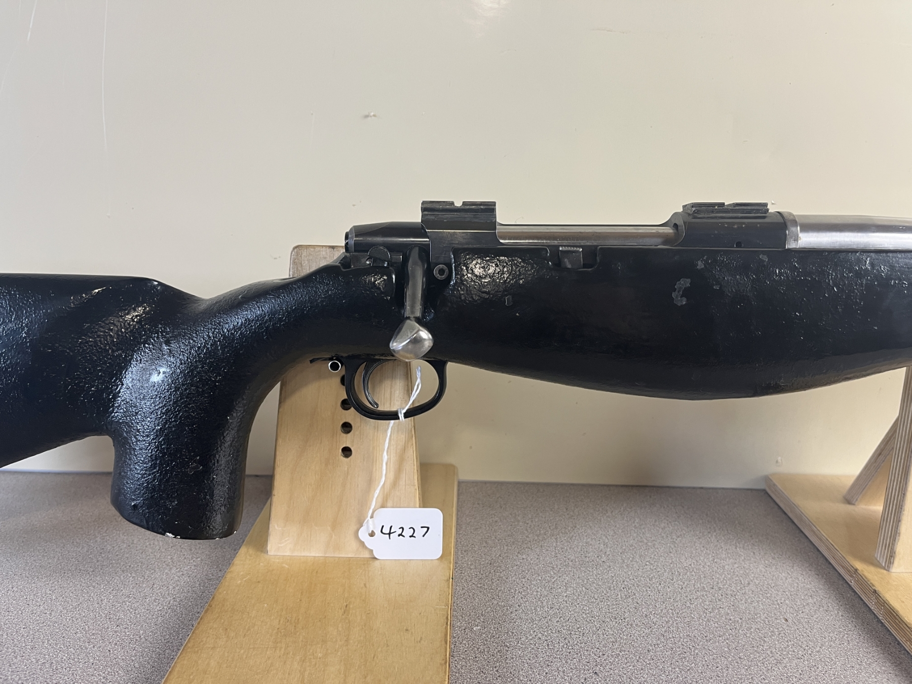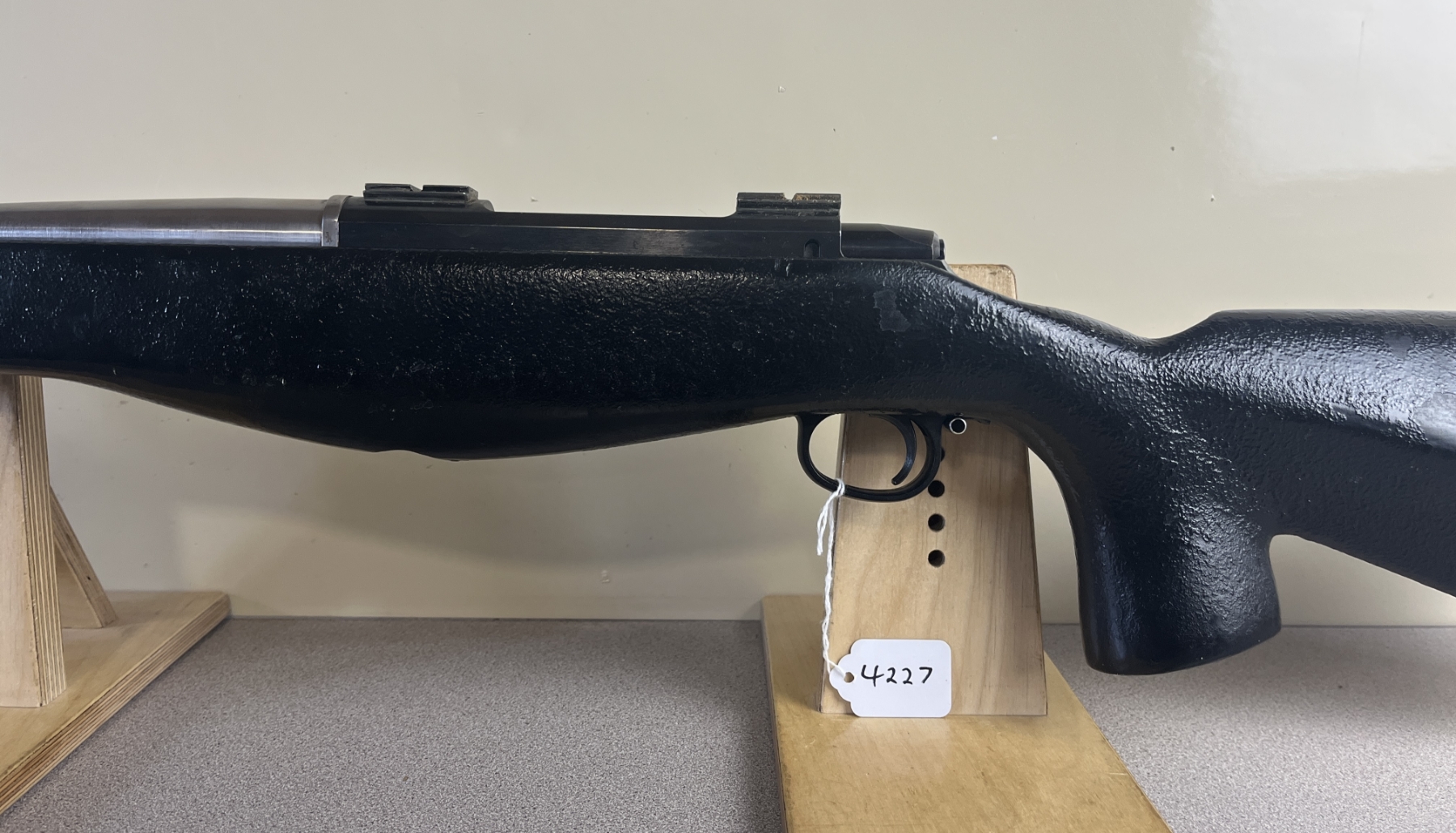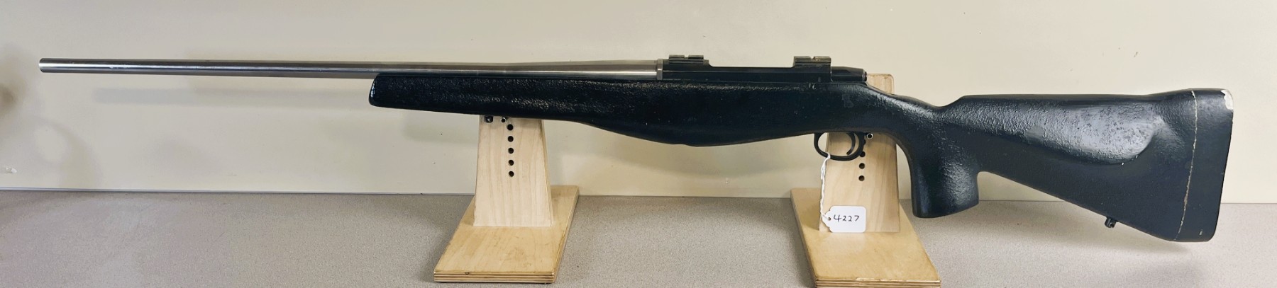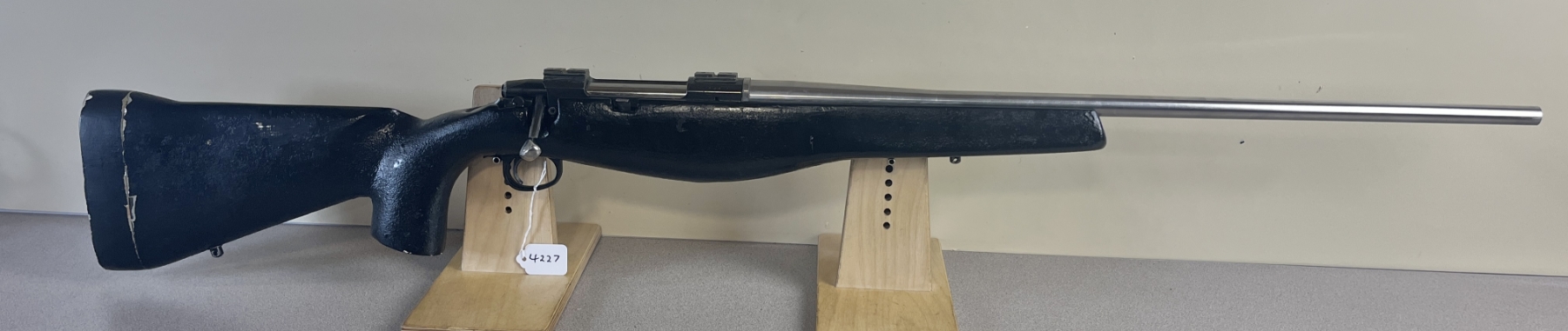 CONDITION: F OVERALL, BORE VG. SPECS: 26IN STAINLESS BBL. CUSTOM STOCK. EXTRAS: SCOPE BASES. S/N: NONE