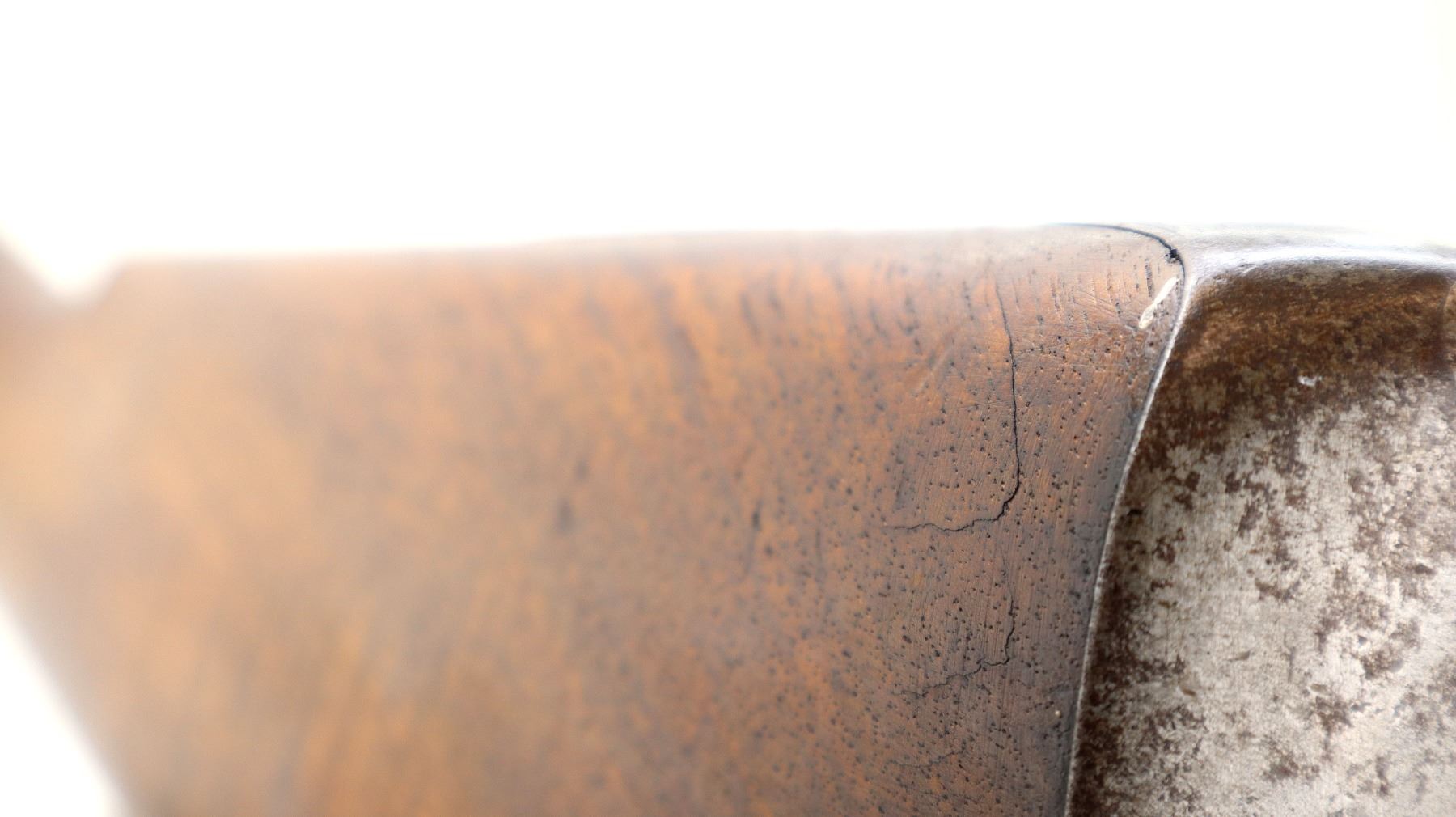Wear: Metal finish turning silver grey with pitting, light rust, scratches, handling marks and wear. Stocks show marks, scratches and wear.