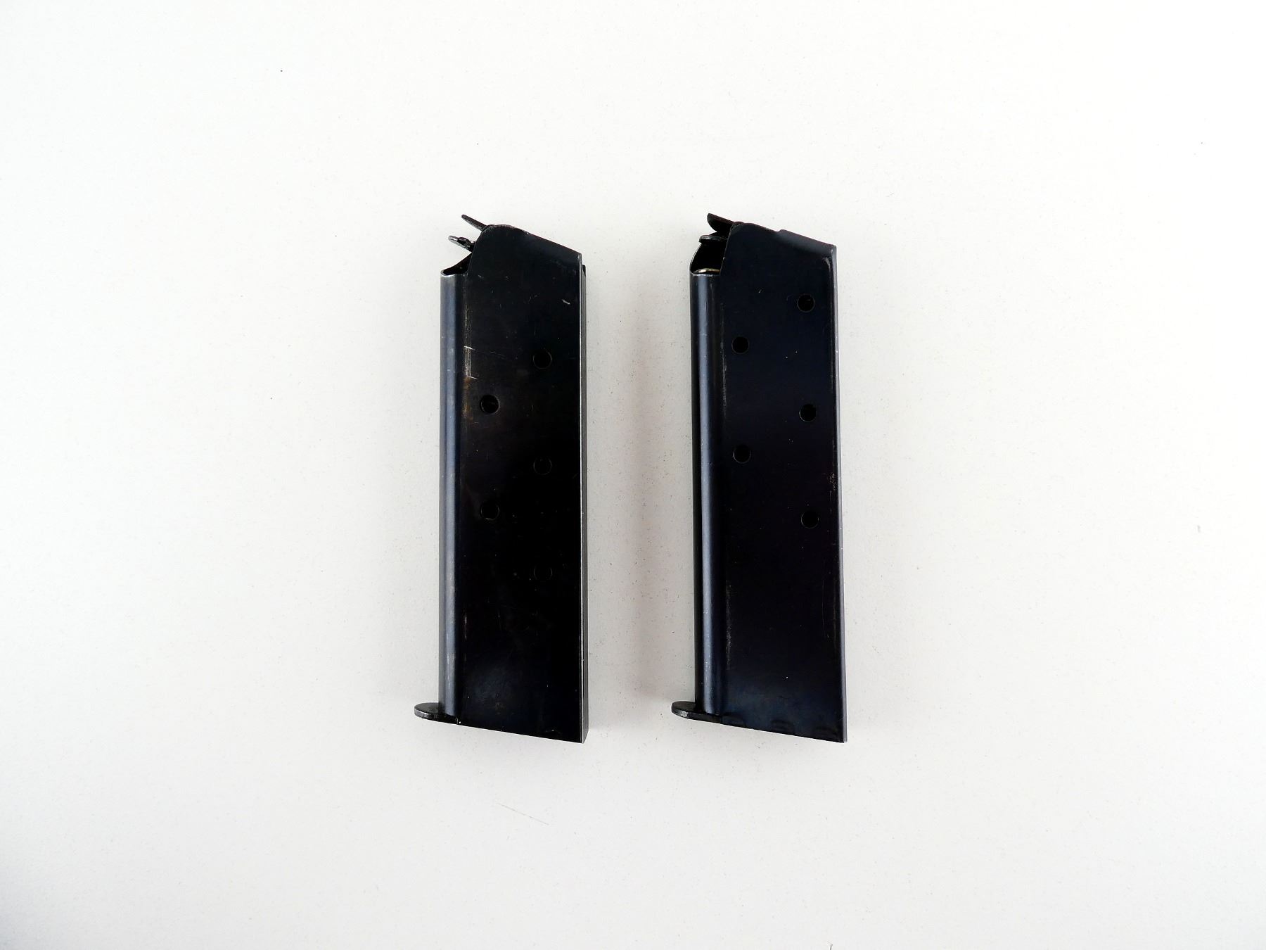LOT INCLUDES; (2) 1911 .45 ACP MAGS, 7 RNDS, BLUED STEEL CONSTRUCTION, BASES MARKED: "COLT, 45 AUTO". SEE PHOTOS. PAL REQUIRED.