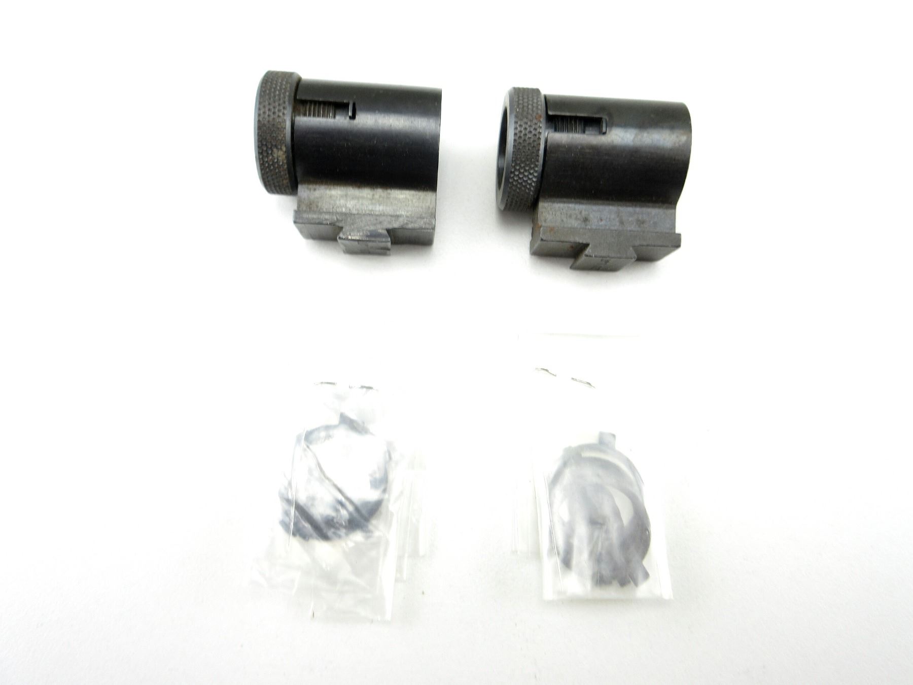 LOT INCLUDES; (2) FRONT GLOBE SIGHTS, BLUED STEEL CONSTRUCTION, MARKED: ".20 LJT" & (10) ASSORTED INSERTS, APPROX. DIA. 0.690". MAY REQUIRE FITTING. SEE PHOTOS.