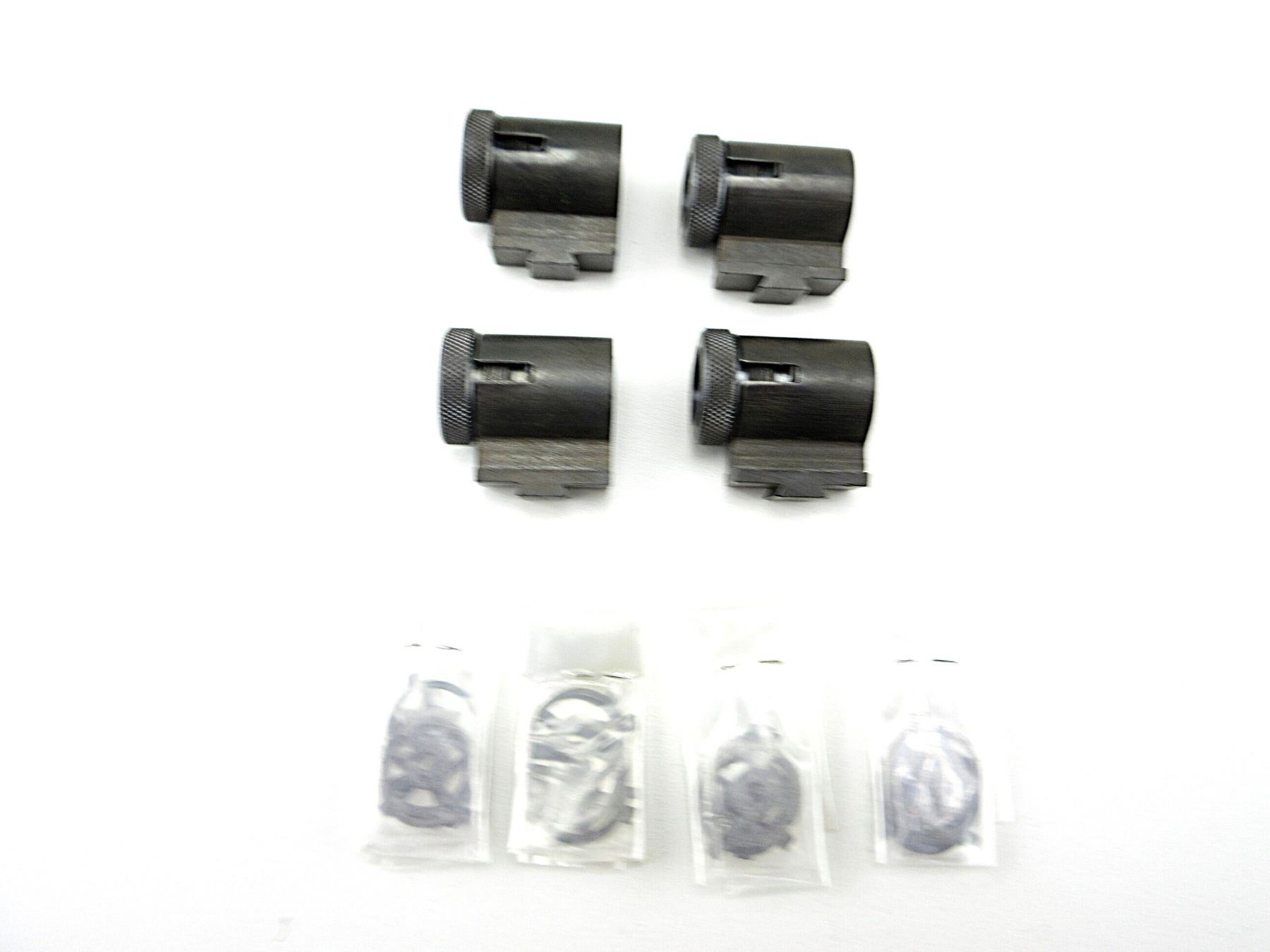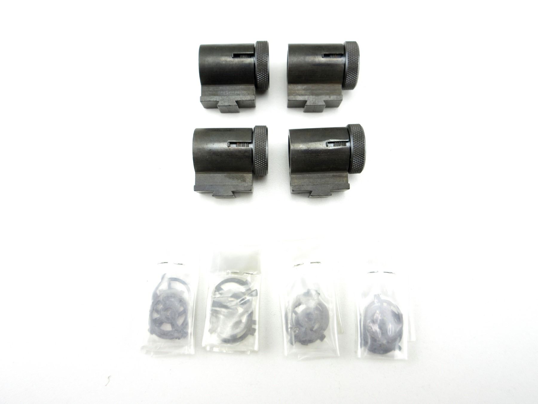 LOT INCLUDES; (4) FRONT GLOBE SIGHTS, BLUED STEEL CONSTRUCTION, MARKED: ".20 LJT" & (20) ASSORTED INSERTS, APPROX. DIA. 0.690". MAY REQUIRE FITTING. SEE PHOTOS.