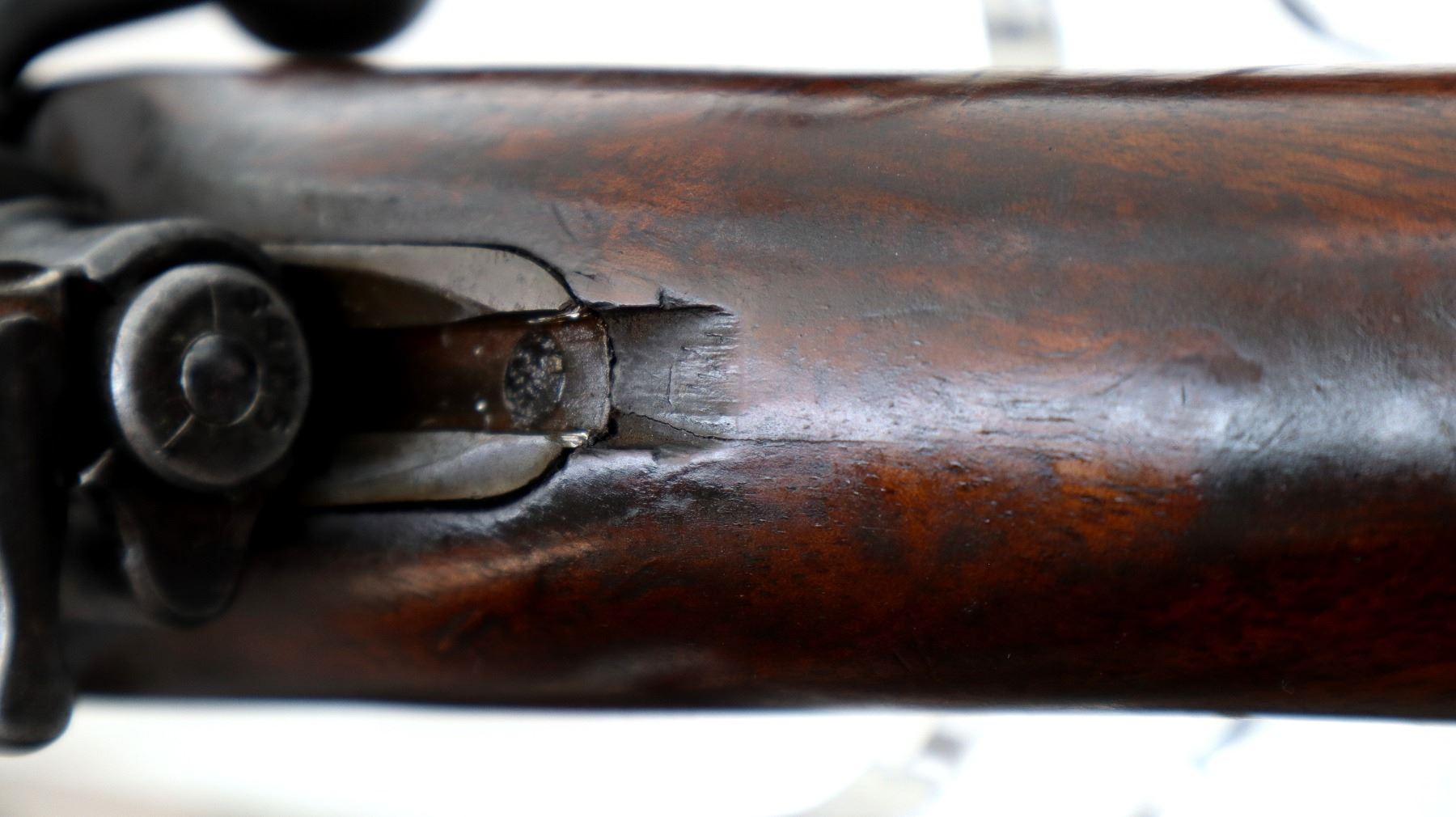 Wear: Metal finish shows some light pitting, rust speckles, scratches, handling marks and wear. Stock shows some marks, scratches and wear.