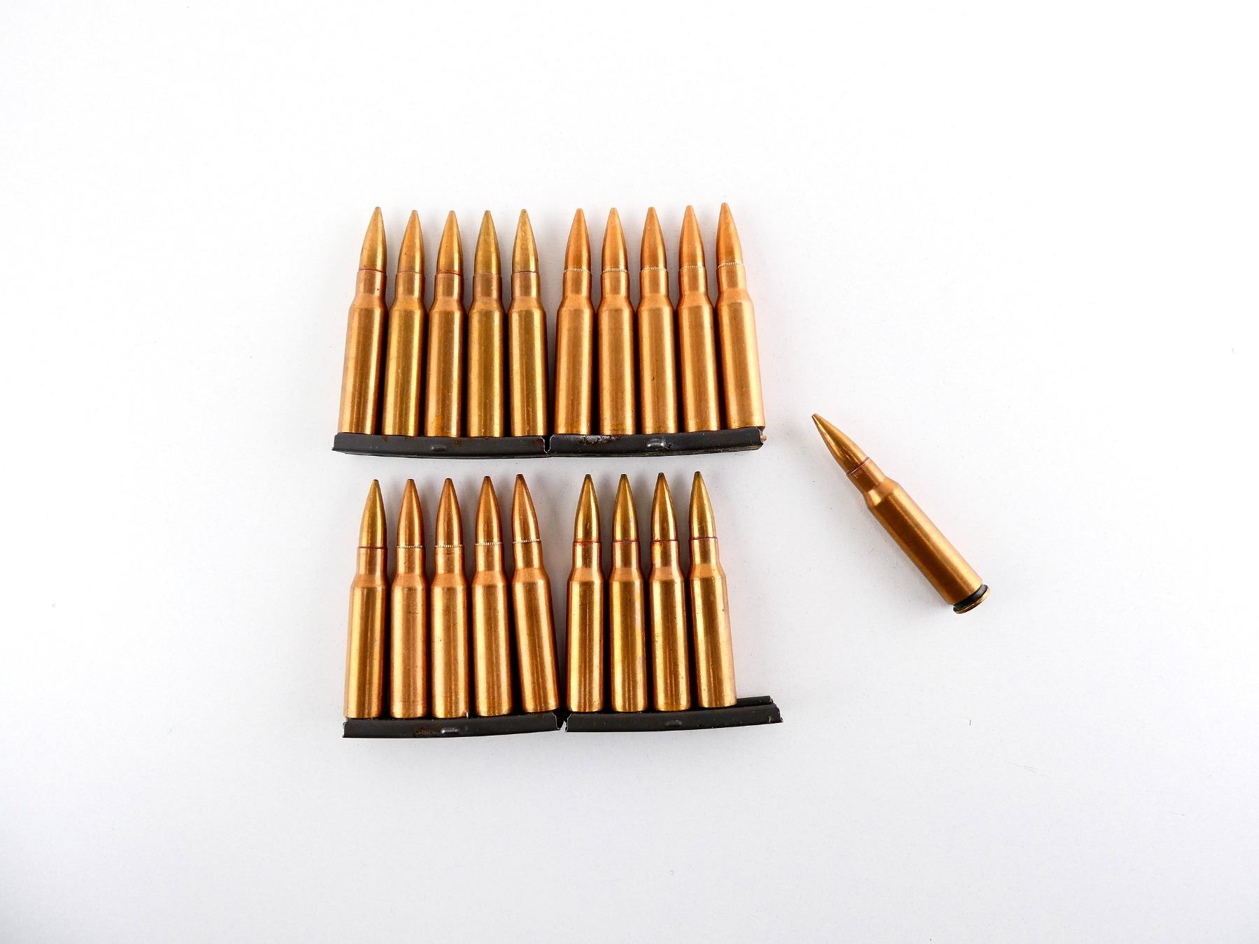 LOT INCLUDES; APPROX. (20) RNDS, FMJ, (4) STRIPPER CLIPS.
