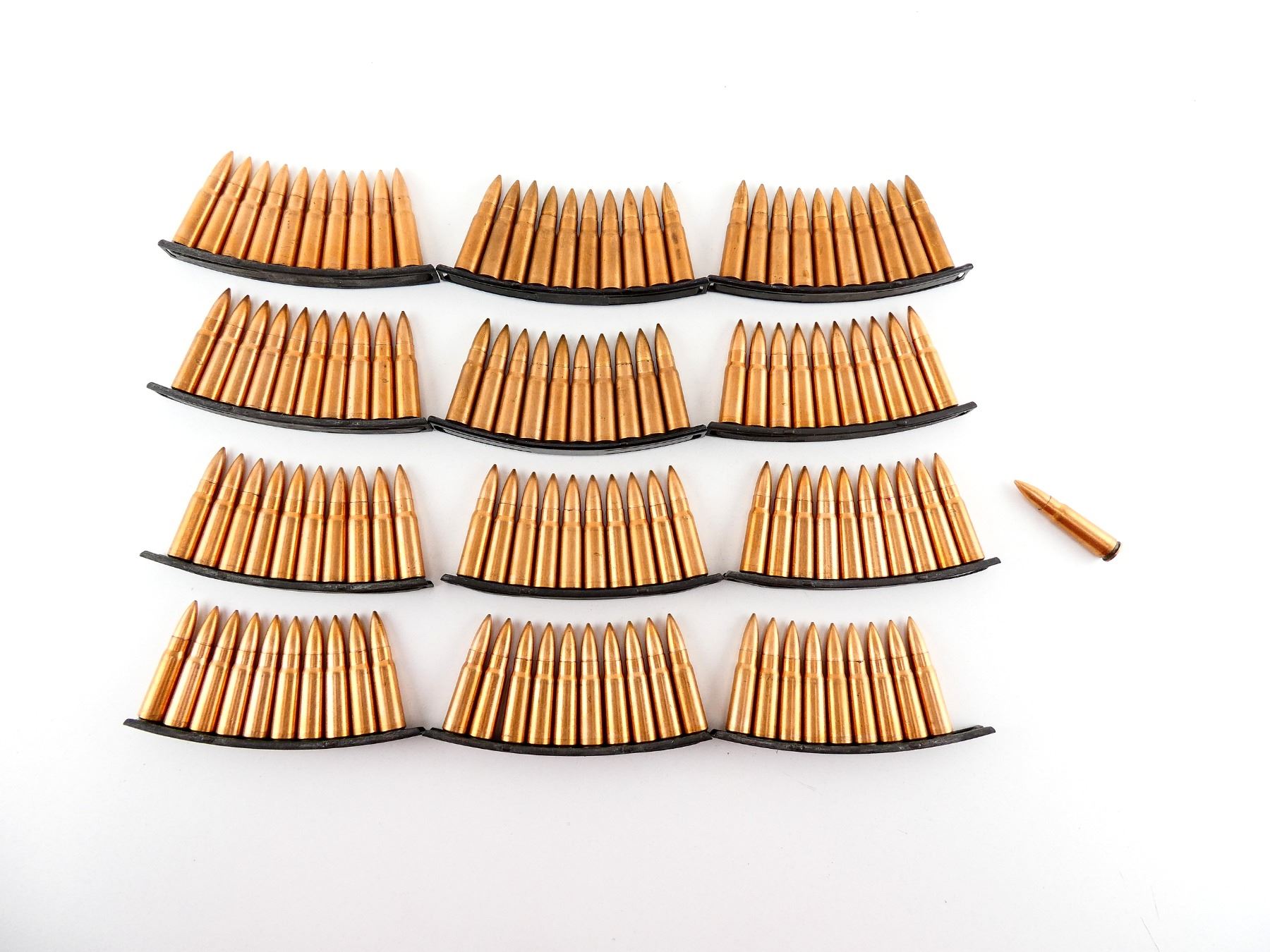 LOT INCLUDES; APPROX. (120) RNDS, FMJ, COPPER WASHED, (12) STRIPPER CLIPS.