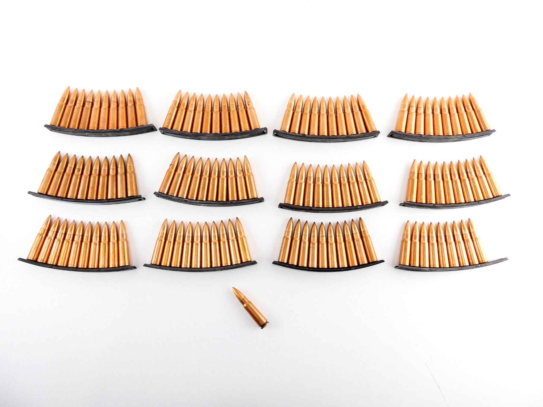 LOT INCLUDES; APPROX. (120) RNDS, FMJ, COPPER WASHED, (12) STRIPPER CLIPS.