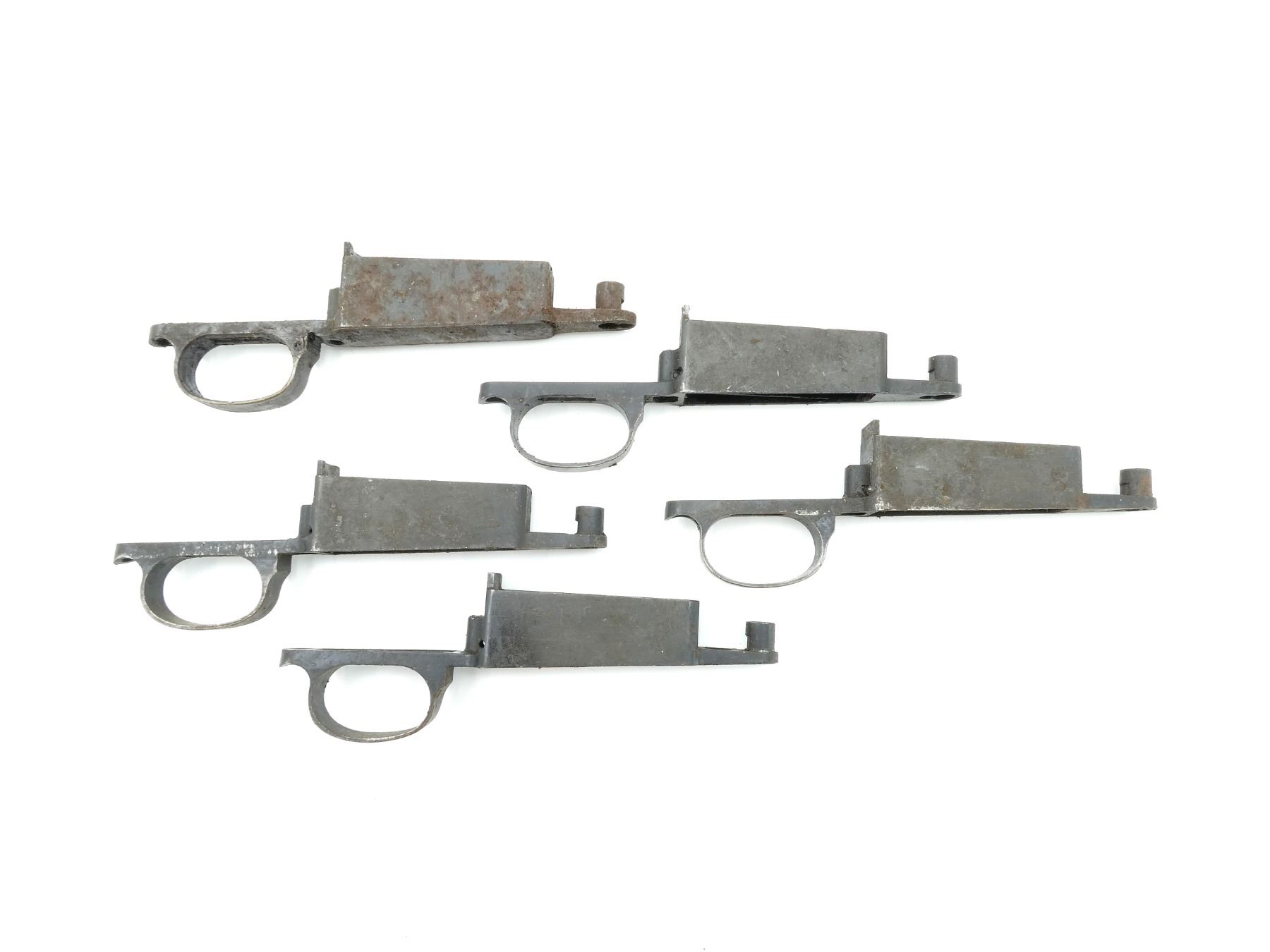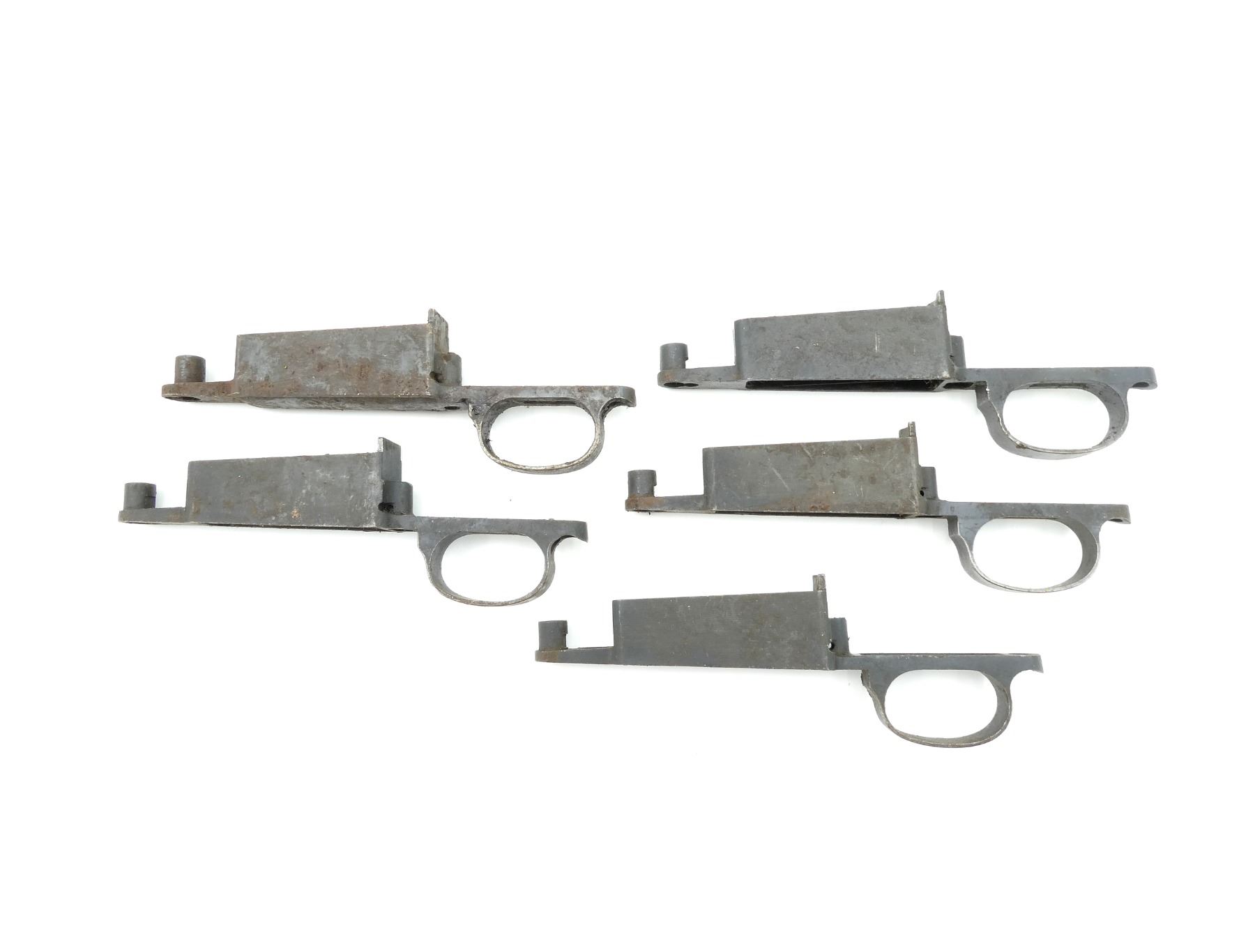 LOT INCLUDES; (5) TRIGGER GUARDS, BLUED STEEL CONSTRUCTION, VARIOUS MARKINGS, OVERALL LENGTH APPROX. 8.5". MAY REQUIRE FITTING. SEE PHOTOS.