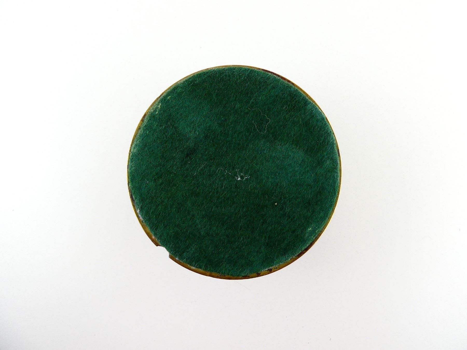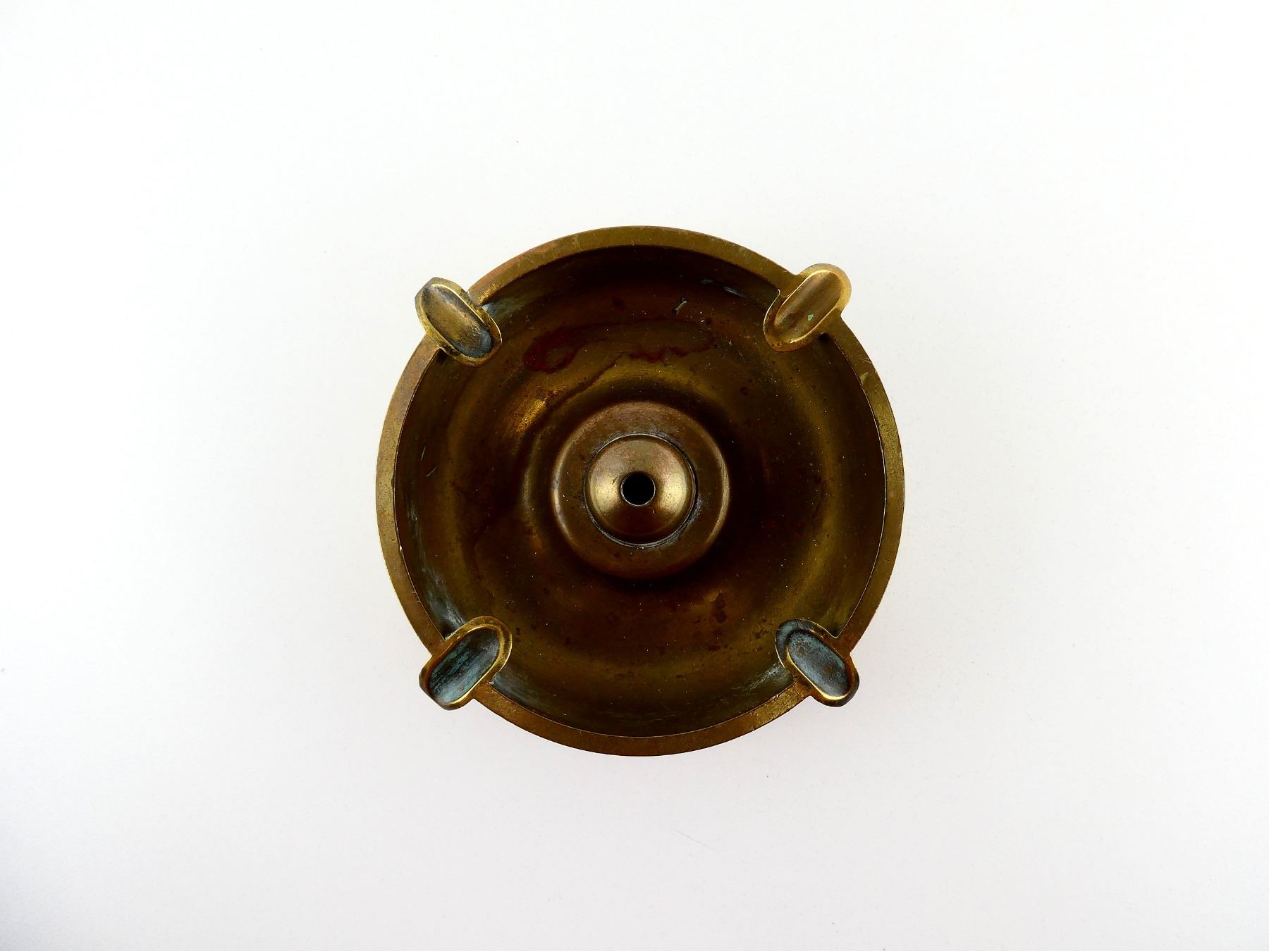 (1) CUT-DOWN BRASS SHELL CASING MADE INTO AN ASHTRAY, FELT COVERED BOTTOM, NO VISIBLE MARKINGS, APPROX. 5.25" DIA. & OVERALL LENGTH APPROX. 1.5". SEE PHOTOS.