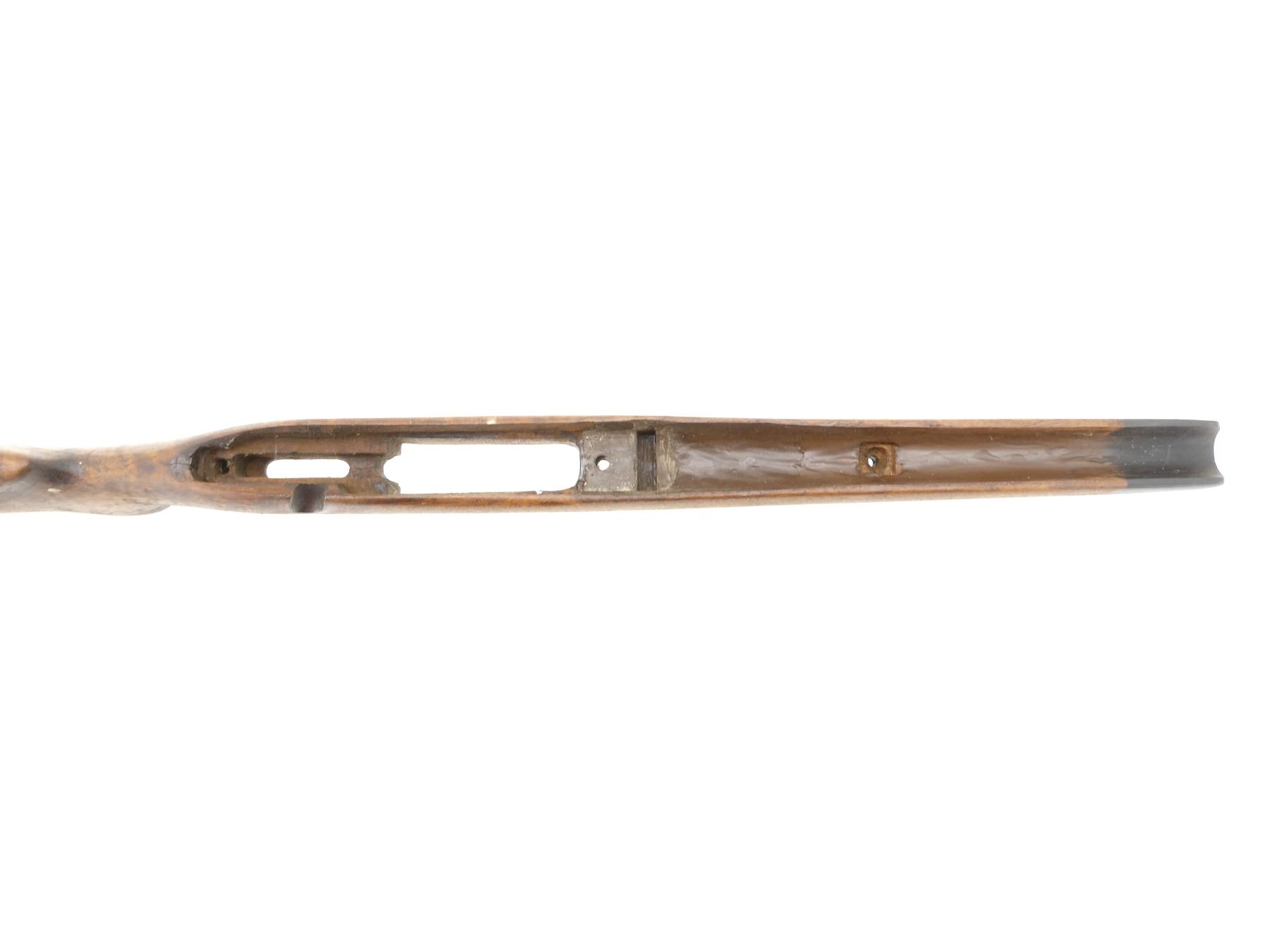 (1) WOODEN STOCK, SMOOTH, UNMARKED, OVERALL LENGTH APPROX. 31 1/8". MAY REQUIRE FITTING. SEE PHOTOS.