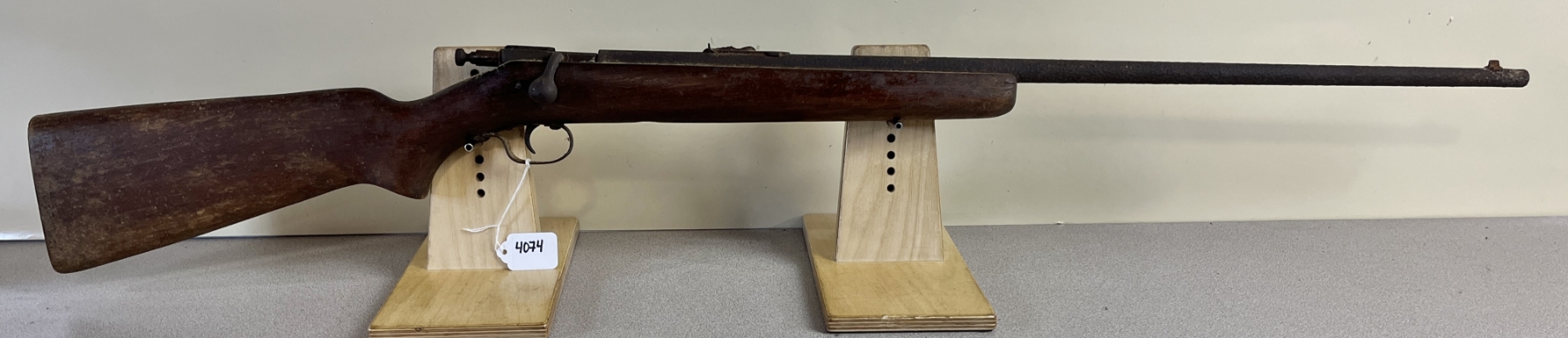 CONDITION: POOR OVERALL, BORE FAIR. HEAVY RUST THROUGHOUT EXTERIOR, GUN APPEARS FUNCTIONAL. SPECS: 27IN BBL W/ IRON SIGHTS. EXTRAS: NONE. S/N: NONE