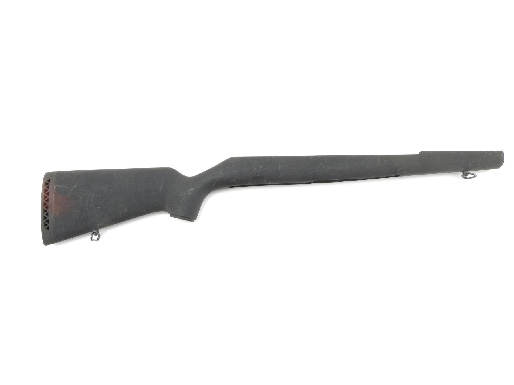 (1) BLACK SYNTHETIC STOCK, SMOOTH, UNMARKED, WITH SLING SWIVELS & CHOATE RECOIL PAD, OVERALL LENGTH APPROX. 29.75". MAY REQUIRE FITTING. SEE PHOTOS.