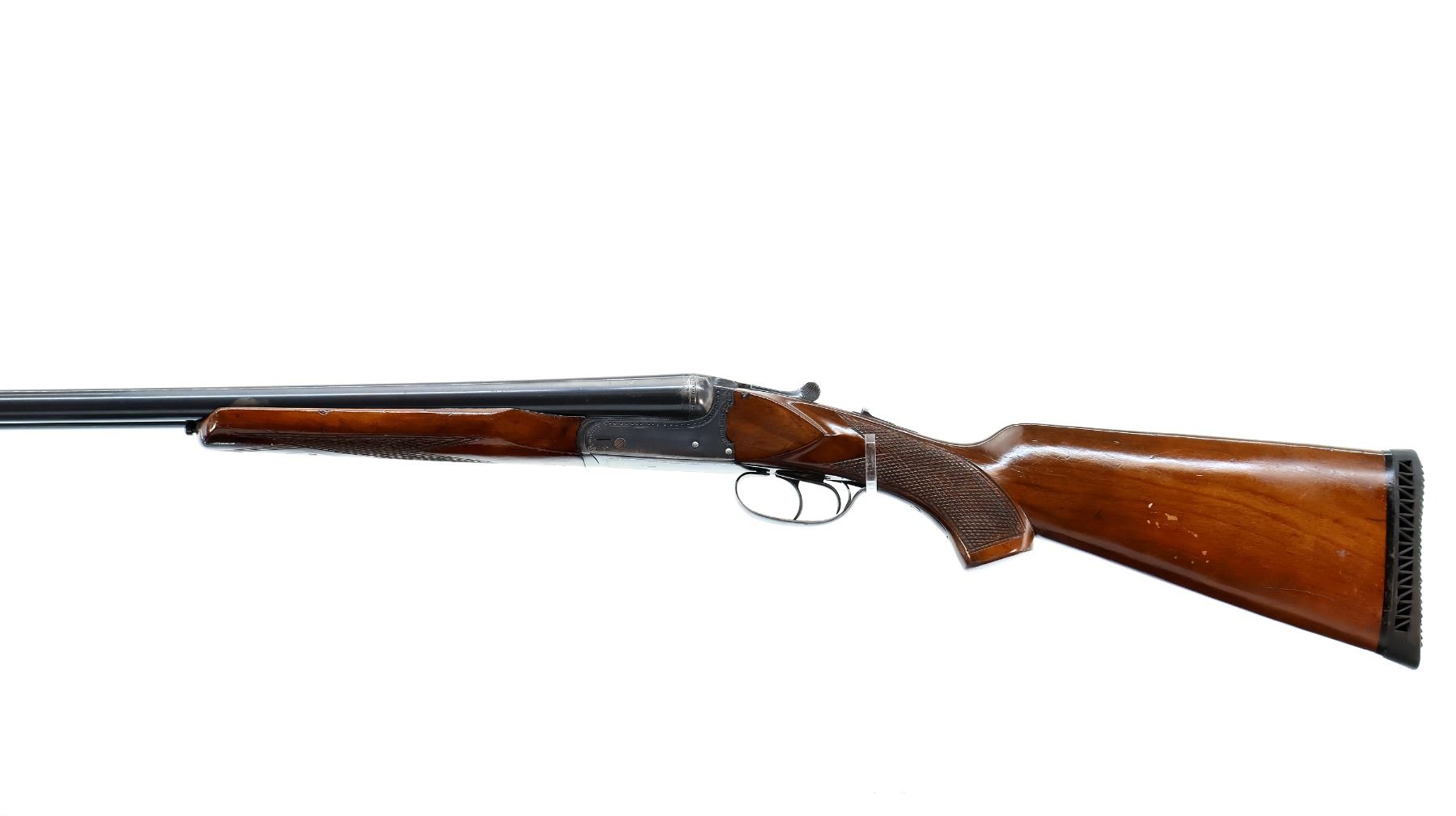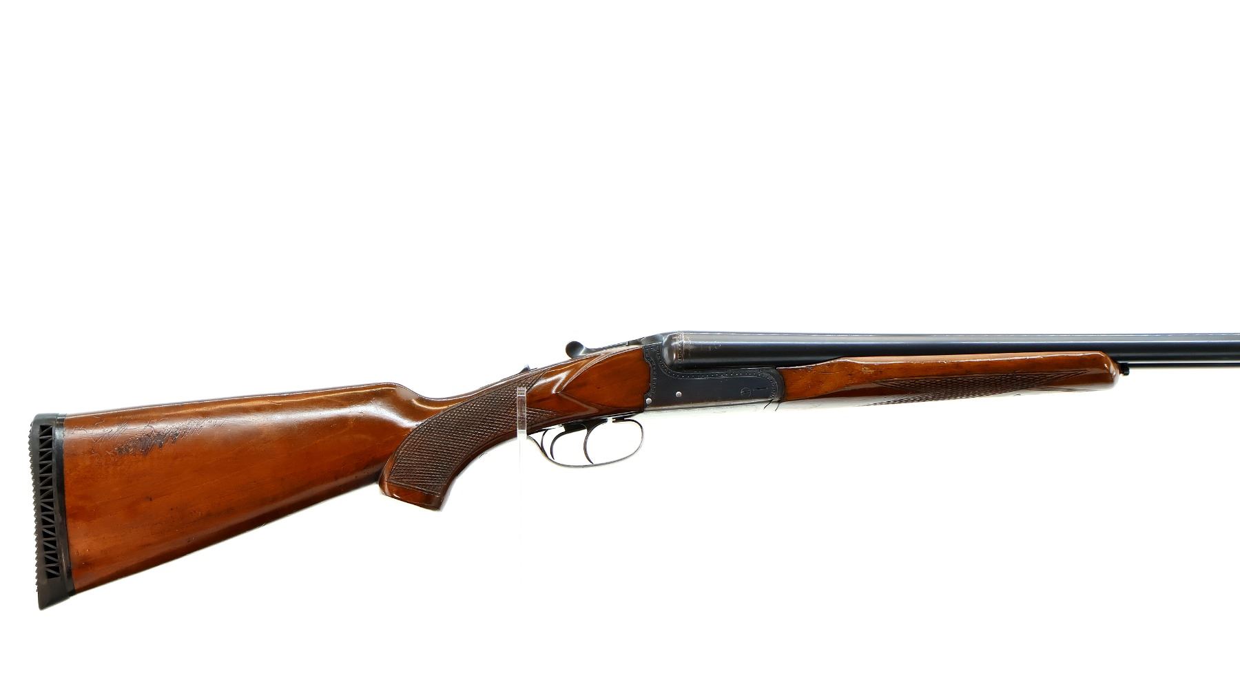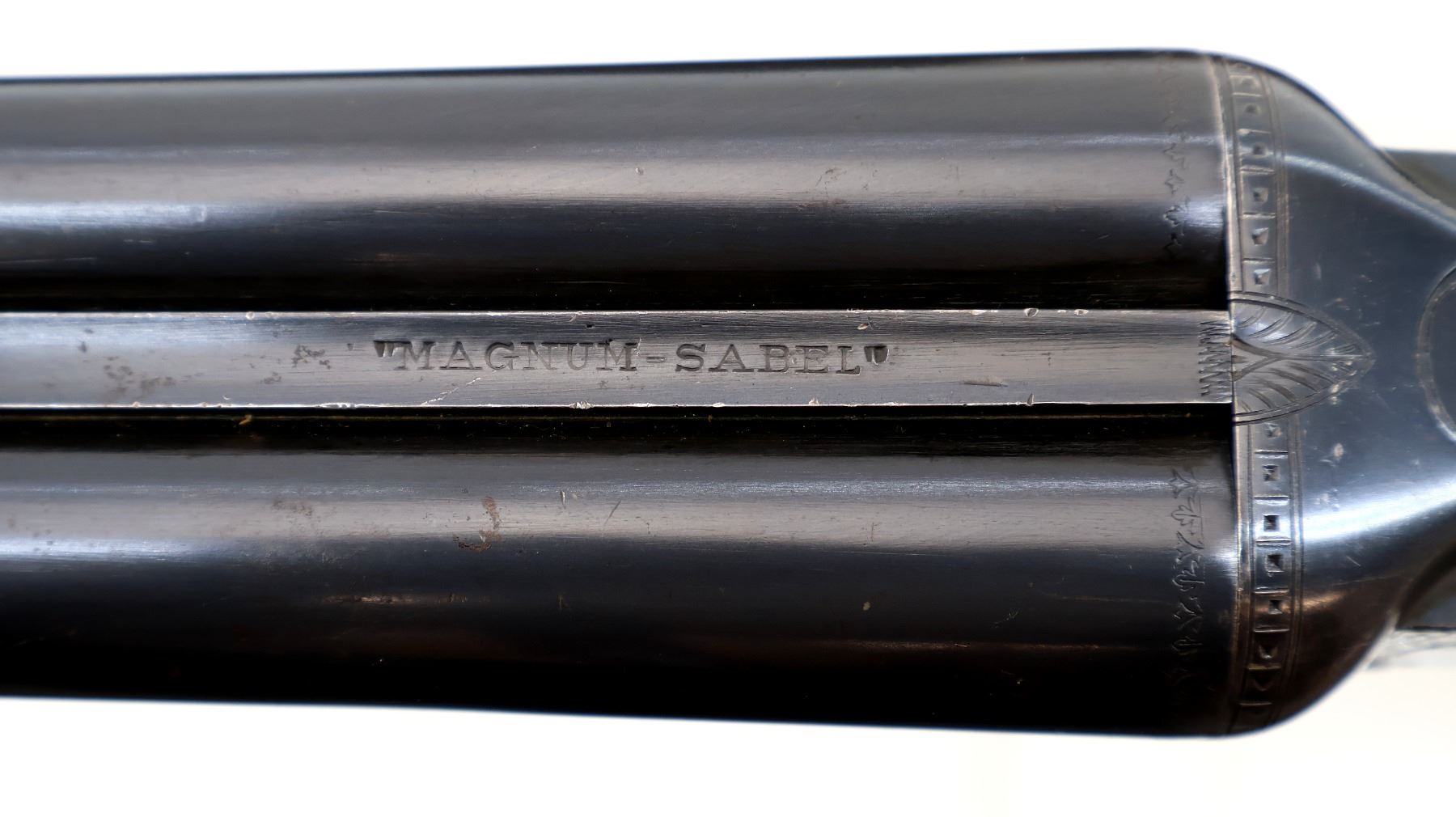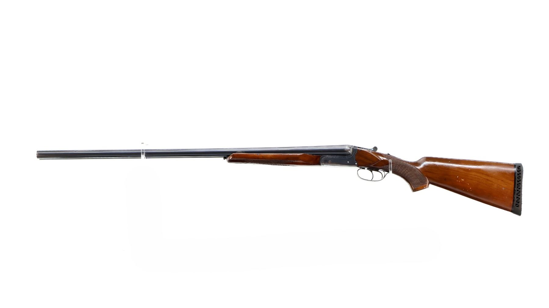Main Description: Brass bead, blued finish, smooth rib, border engraved receiver, automatic safety, extractor, left hammer does not cock, stays in the fired position requires parts, adjustment or repair, double triggers. Two piece wood stocks, checkered Beavertail forearm and pistol grip, black vented rubber recoil pad.