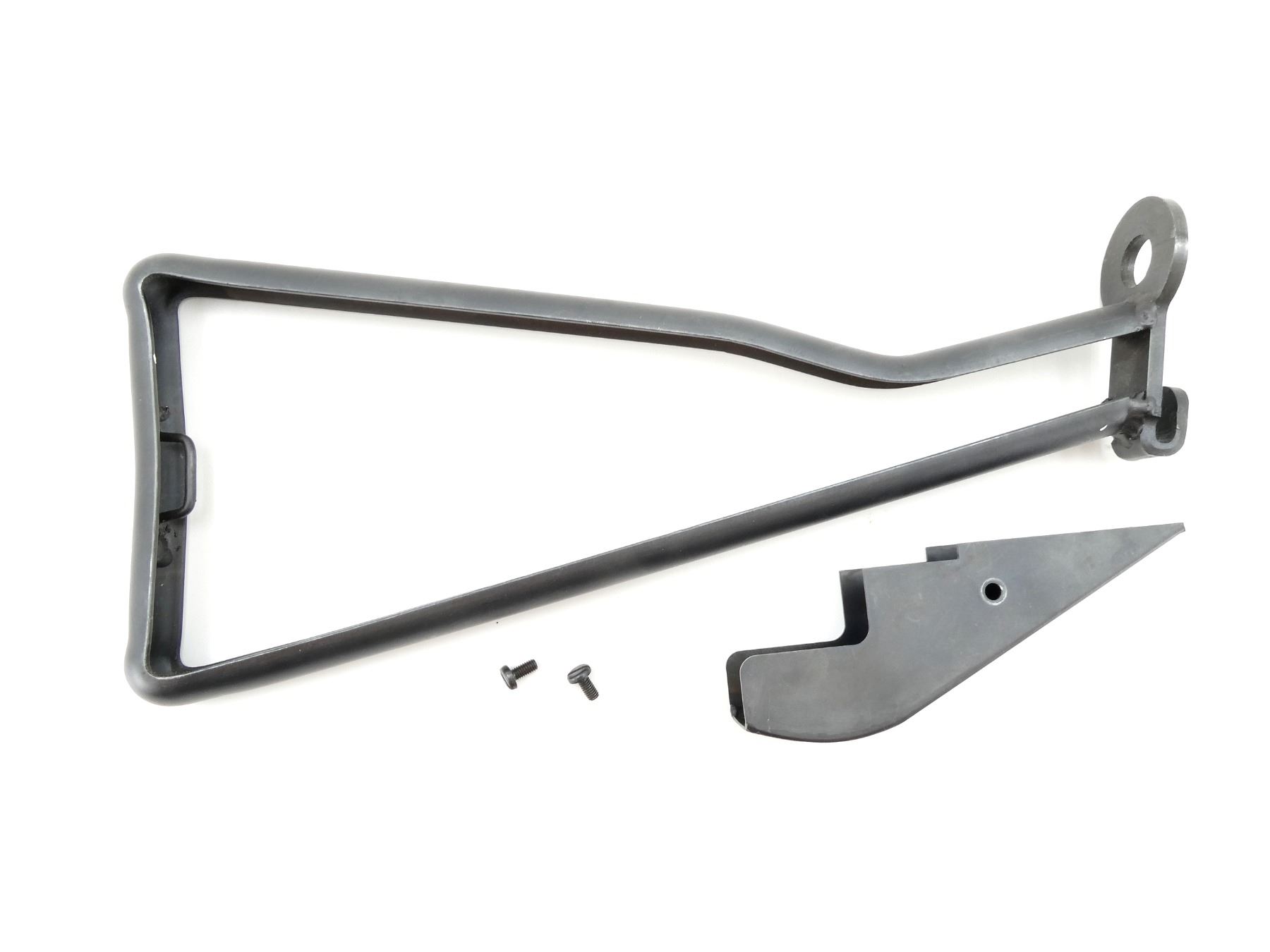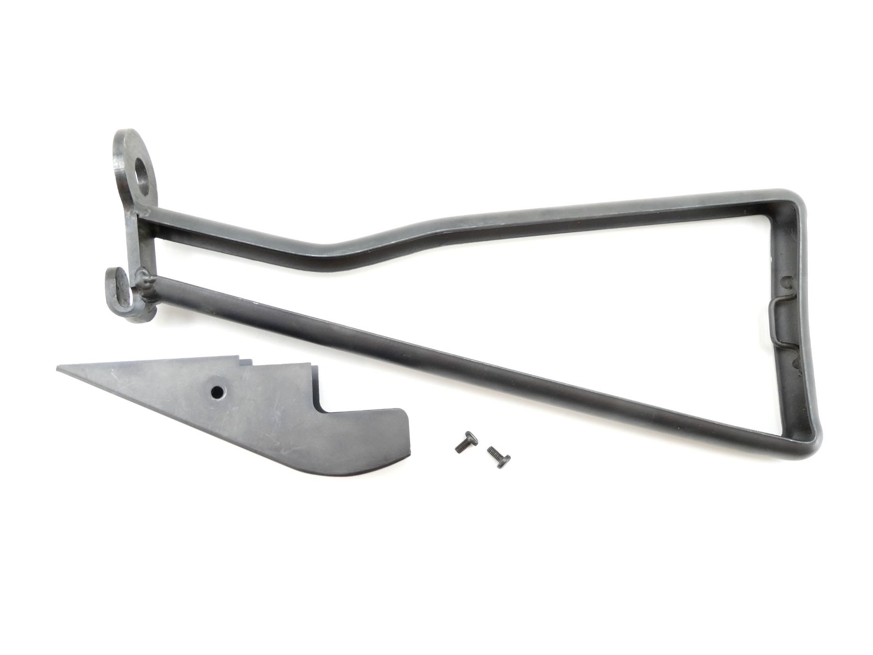 LOT INCLUDES; (1) LOOP-TYPE STOCK, BLUED STEEL, MARKED "6.", OVERALL LENGTH APPROX. 12.25" & (1) TRIGGER COVER WITH SCREWS. MAY REQUIRE FITTING. SEE PHOTOS.