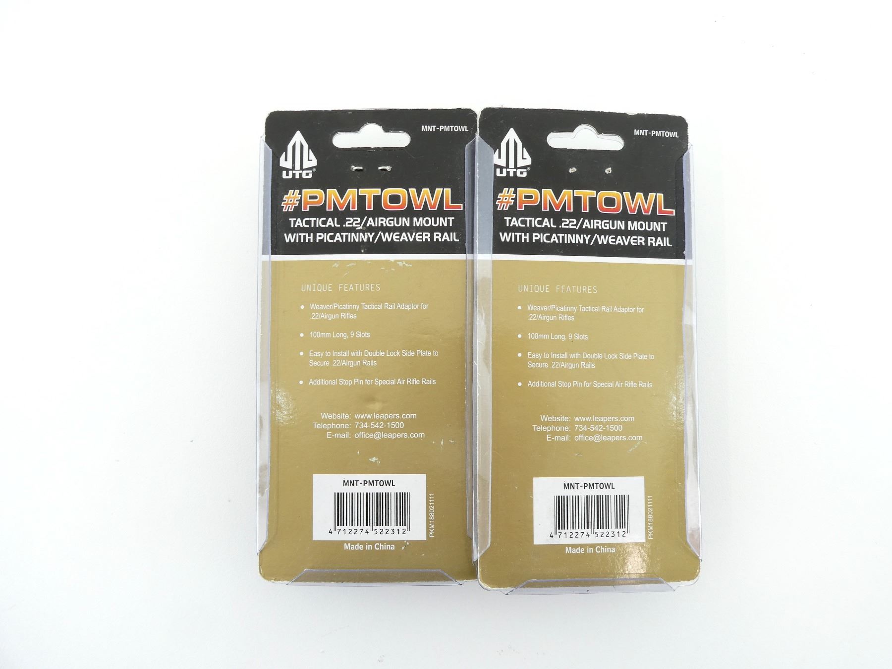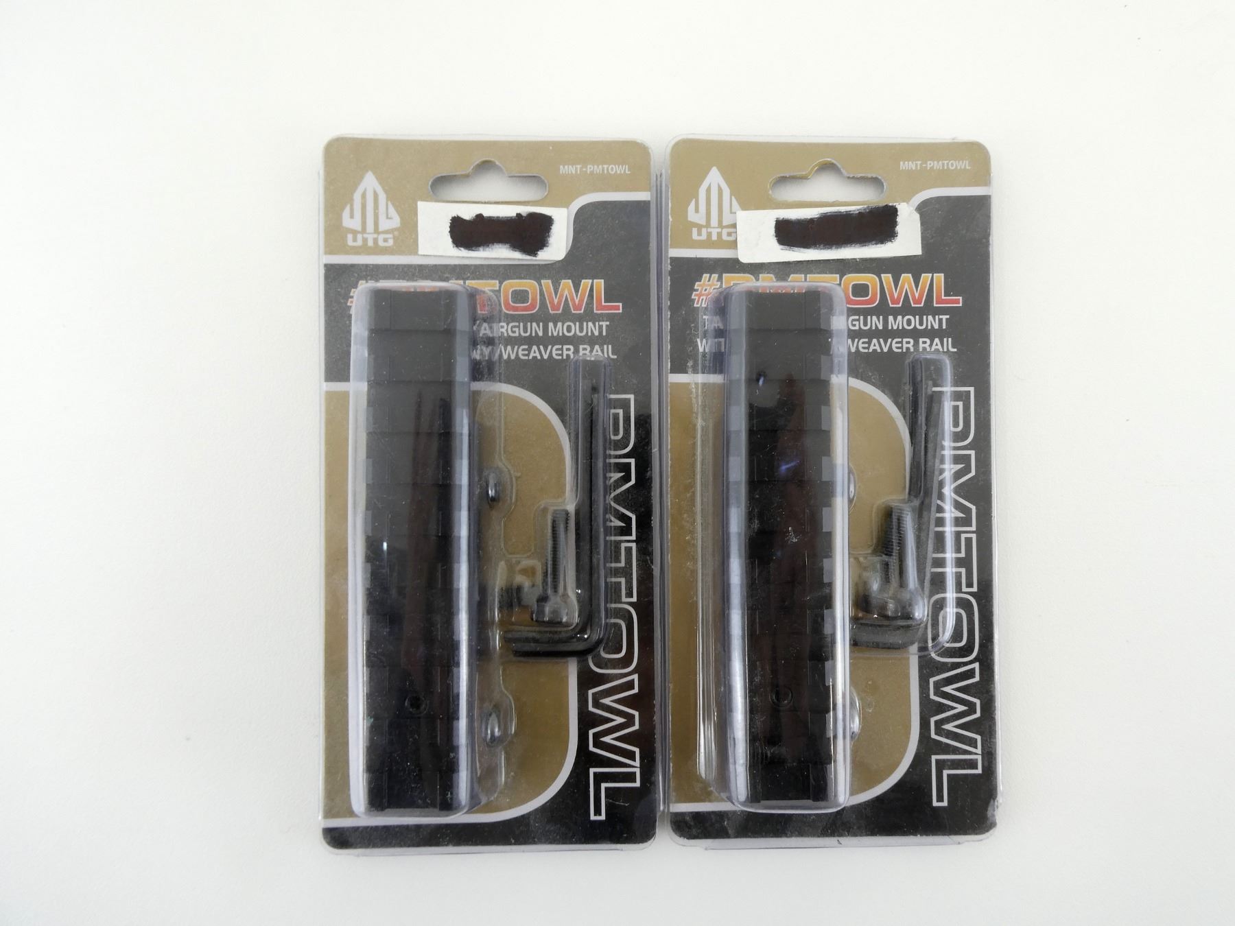LOT INCLUDES; (2) UTG RAIL MOUNTS, FOR .22/AIRGUN RIFLES, PRODUCT #: MNT-PMTOWL, NEW OLD STOCK, IN ORIGINAL PACKAGING. MAY REQUIRE FITTING. SEE PHOTOS.