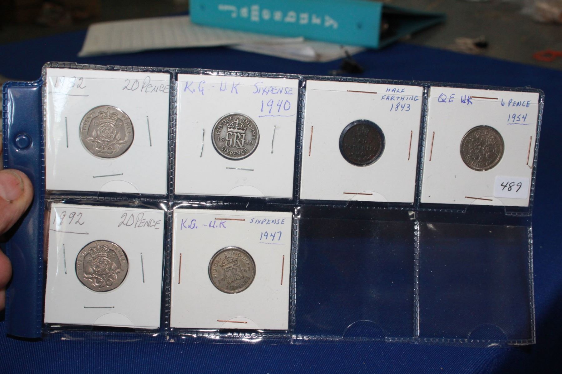 (3) Six Pence; (2) 20 Pence; (1) Half Farthing