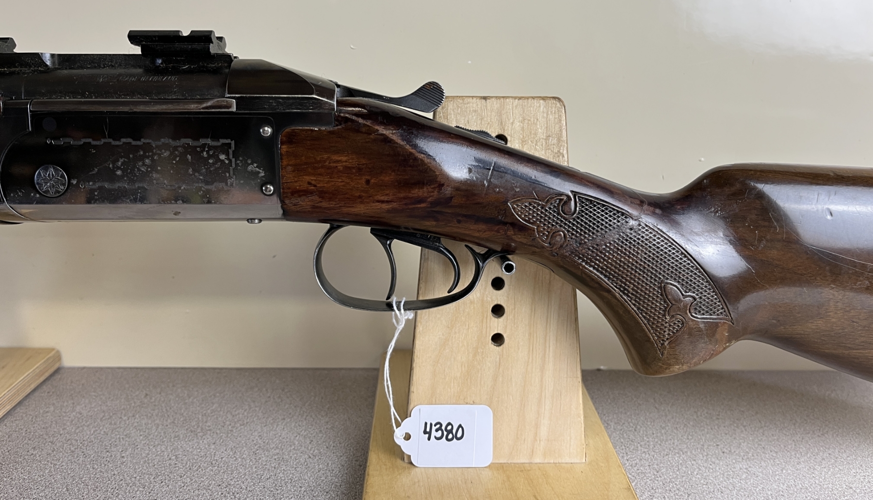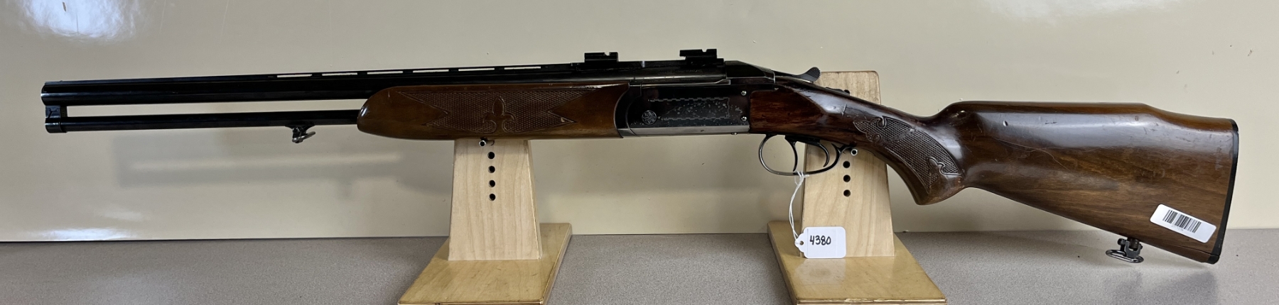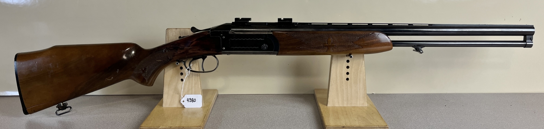 CONDITION: F OVERALL G BORES. NOTE SHOWS LARGE REPAIRED CRACK AT WRIST AND CRACK AT HEEL. SPECS: 23-1/2IN VENT RIB 12 GA OVER .222 REM BBLS. EXTRAS: SCOPE BASES. S/N: 91859