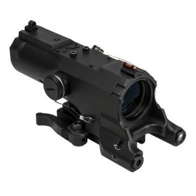 Top of the ECO scope has an integrated NcSTAR® Micro Dot reflex dot sight base for mounting a secondary reflex optic to the top of the scope.