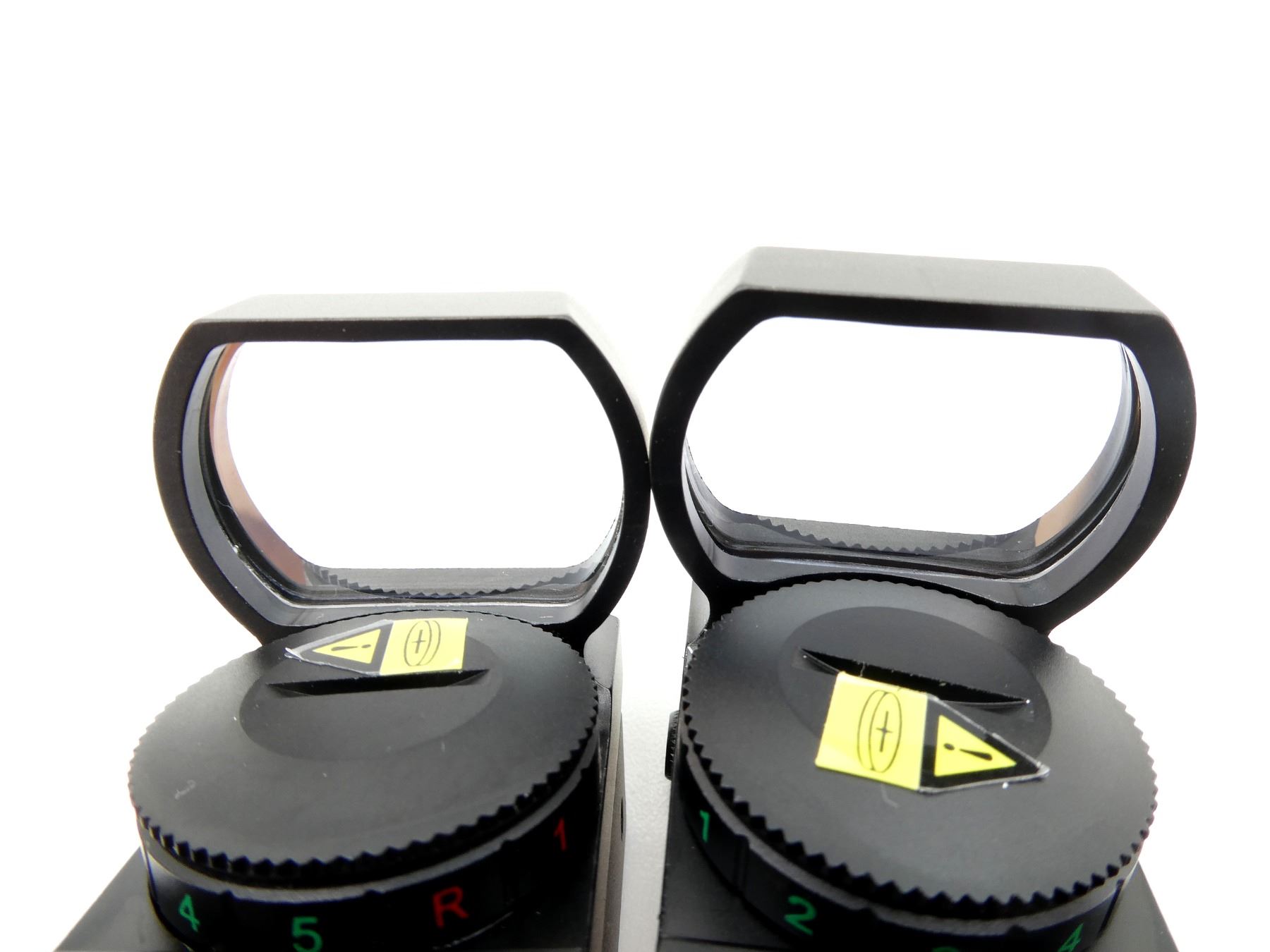 LOT INCLUDES; (2) RED / GREEN DOT SIGHT, CLEAR OPTICS, UNTESTED RED / GREEN DOT RETICLE, WITH VARIOUS BRIGHTNESS SETTINGS, 29MM DIAMETER, WINDAGE & ELEVATION KNOBS TURN, SHOWS LIGHT WEAR & TEAR / USE MARKS, WITH MOUNTING BASE, INSTRUCTIONS & ORIGINAL PACKAGING. MAY REQUIRE FITTING. SEE PHOTOS.