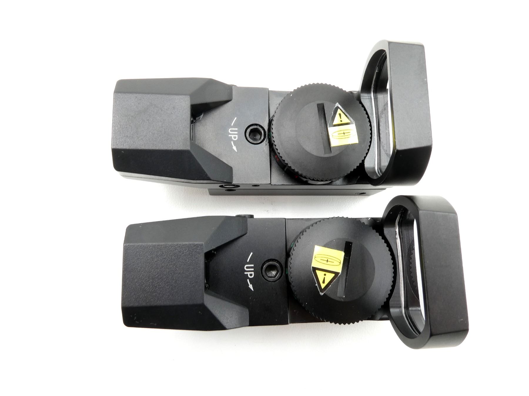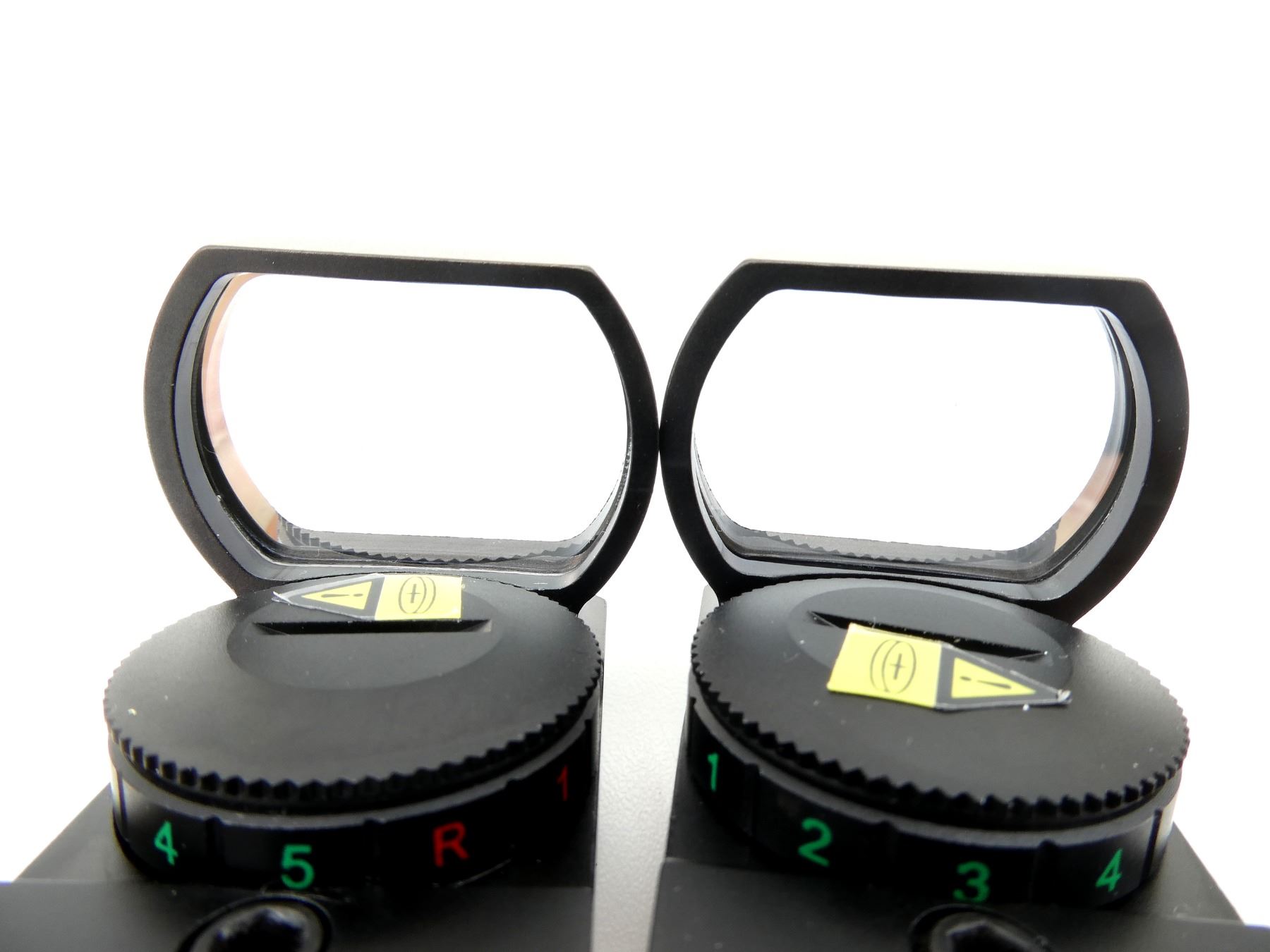 LOT INCLUDES; (2) RED / GREEN DOT SIGHT, CLEAR OPTICS, UNTESTED RED / GREEN DOT RETICLE, WITH VARIOUS BRIGHTNESS SETTINGS, 29MM DIAMETER, WINDAGE & ELEVATION KNOBS TURN, SHOWS LIGHT WEAR & TEAR / USE MARKS, WITH MOUNTING BASE, INSTRUCTIONS & ORIGINAL PACKAGING. MAY REQUIRE FITTING. SEE PHOTOS.