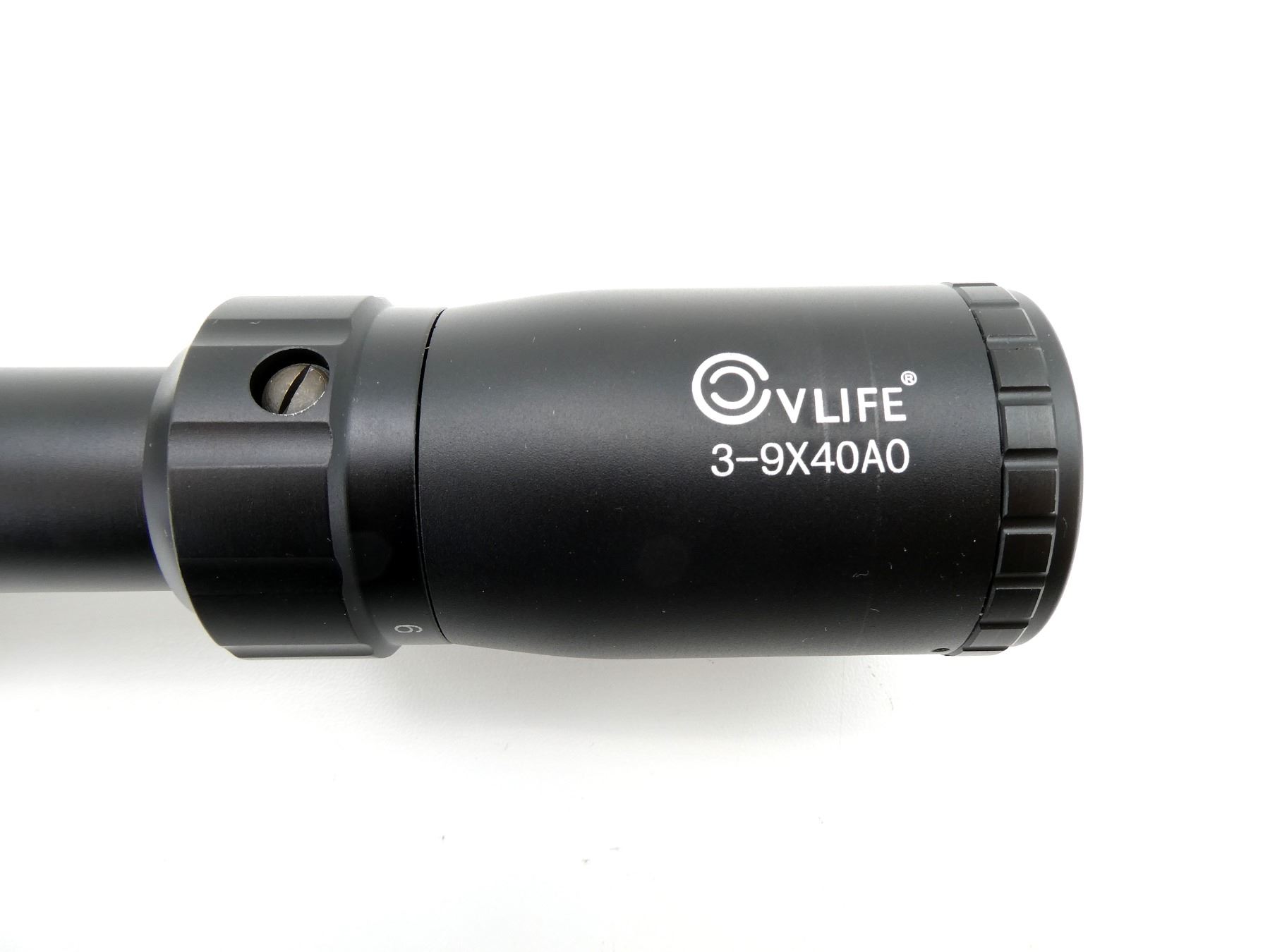 (1) CLEAR OPTICS, MULTI-FUNCTION RETICLE, 1" TUBE DIAMETER, WORKING MAGNIFICATION RING, WINDAGE & ELEVATION KNOBS TURN, MARKED: "VLIFE, 3-9X40 AO", ETC., SHOWS LIGHT WEAR & TEAR / USE MARKS, WITH 1" SCOPE RINGS, LENS COVERS, INSTRUCTIONS & ORIGINAL PACKAGING. MAY REQUIRE FITTING. SEE PHOTOS.